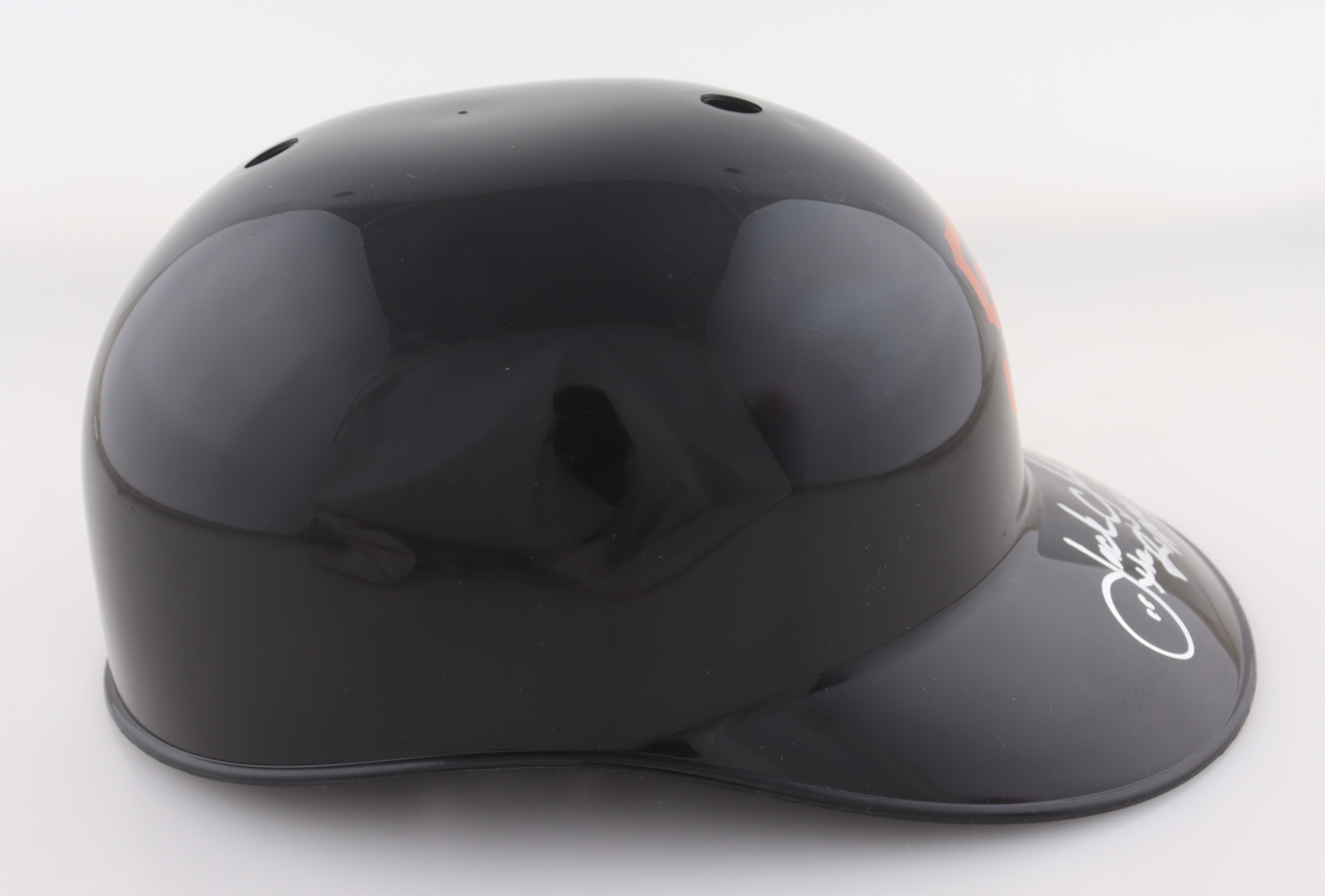 San Francisco Giants replica plastic souvenir helmet. Hand-signed and inscribed by Jack Clark.