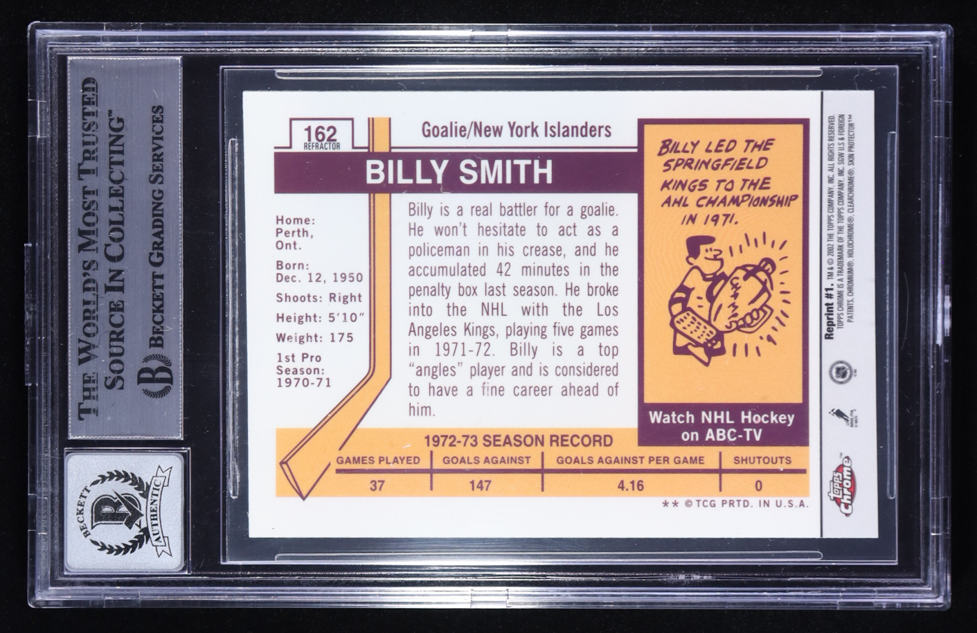 Billy Smith Signed 2001-02 Topps Chrome Reprint Refractors #1 (BGS | Autograph Graded BGS 10)
