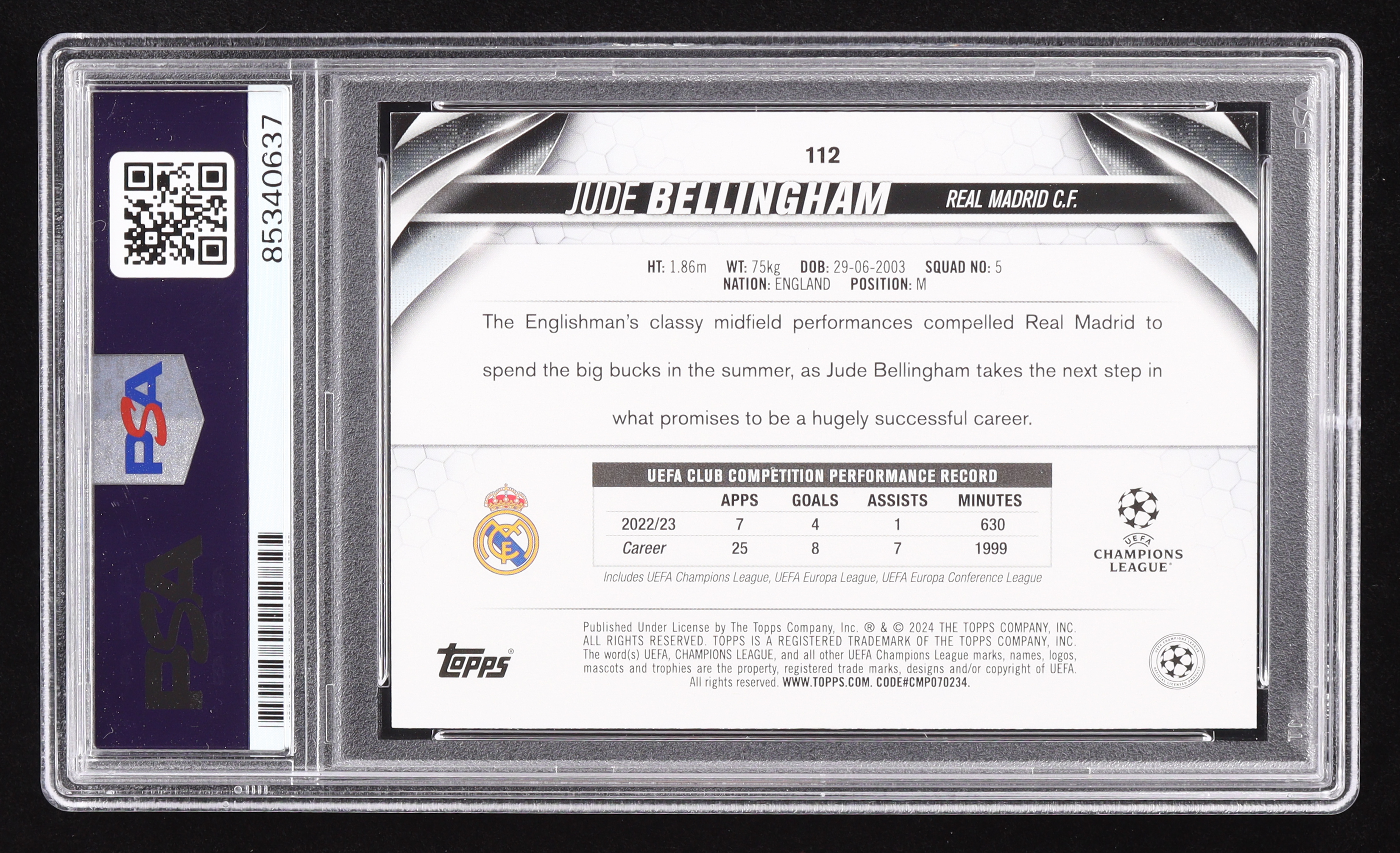 Jude Bellingham Signed 2023-24 Topps UEFA Club Competitions #112 (PSA | Auto Grade PSA Authentic)