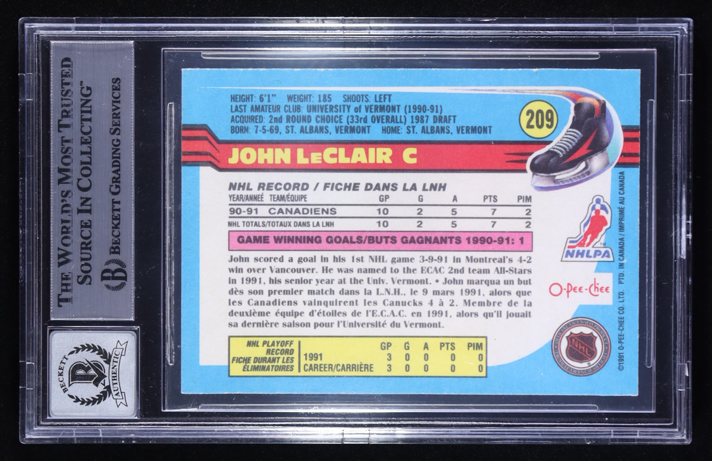 John Leclair Signed 1991-92 O-Pee-Chee #209 RC (BGS | Autograph Graded BGS 10)