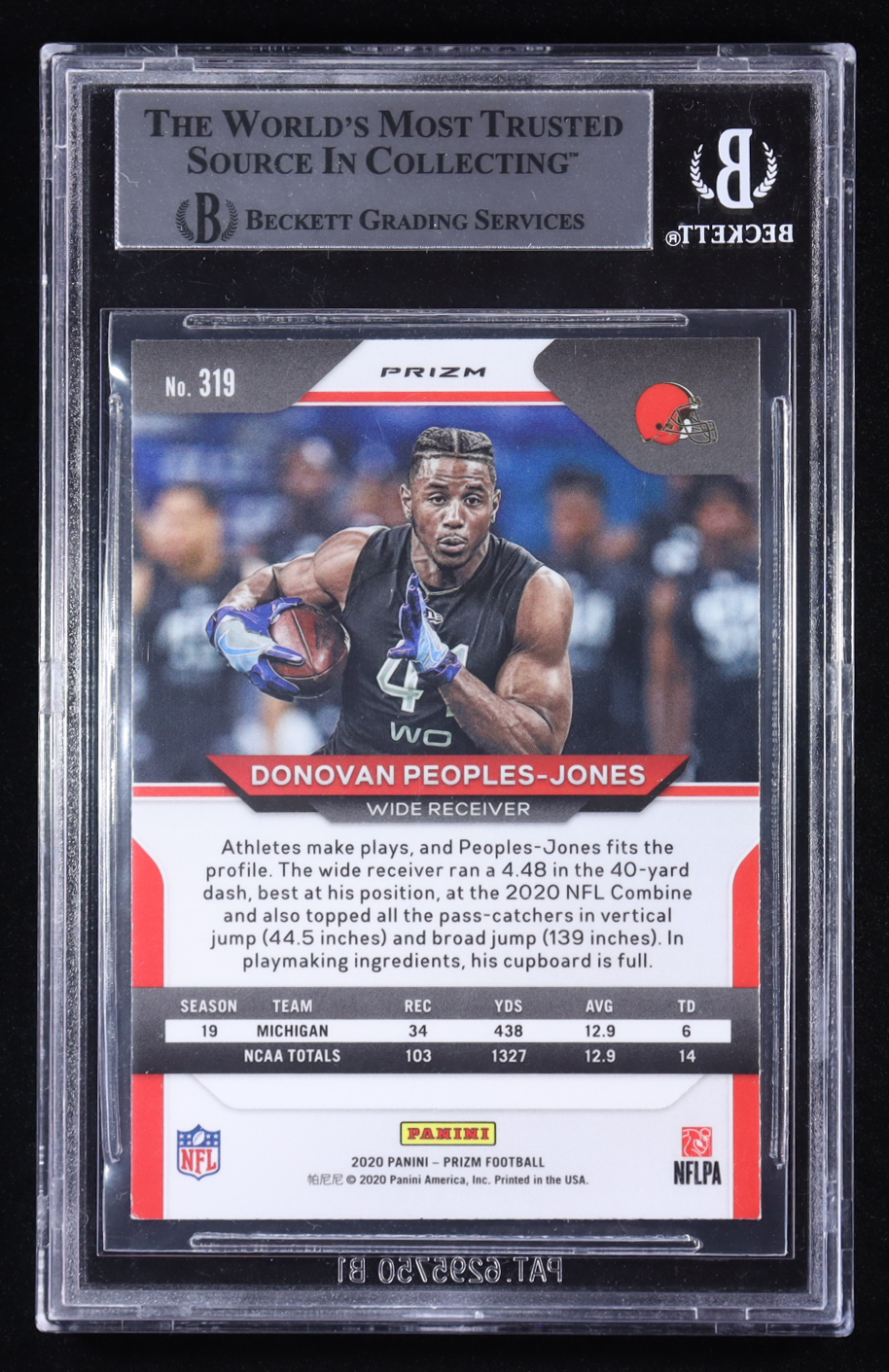 Donovan Peoples-Jones Signed 2020 Panini Prizm Orange Disco #319 RC (BGS)