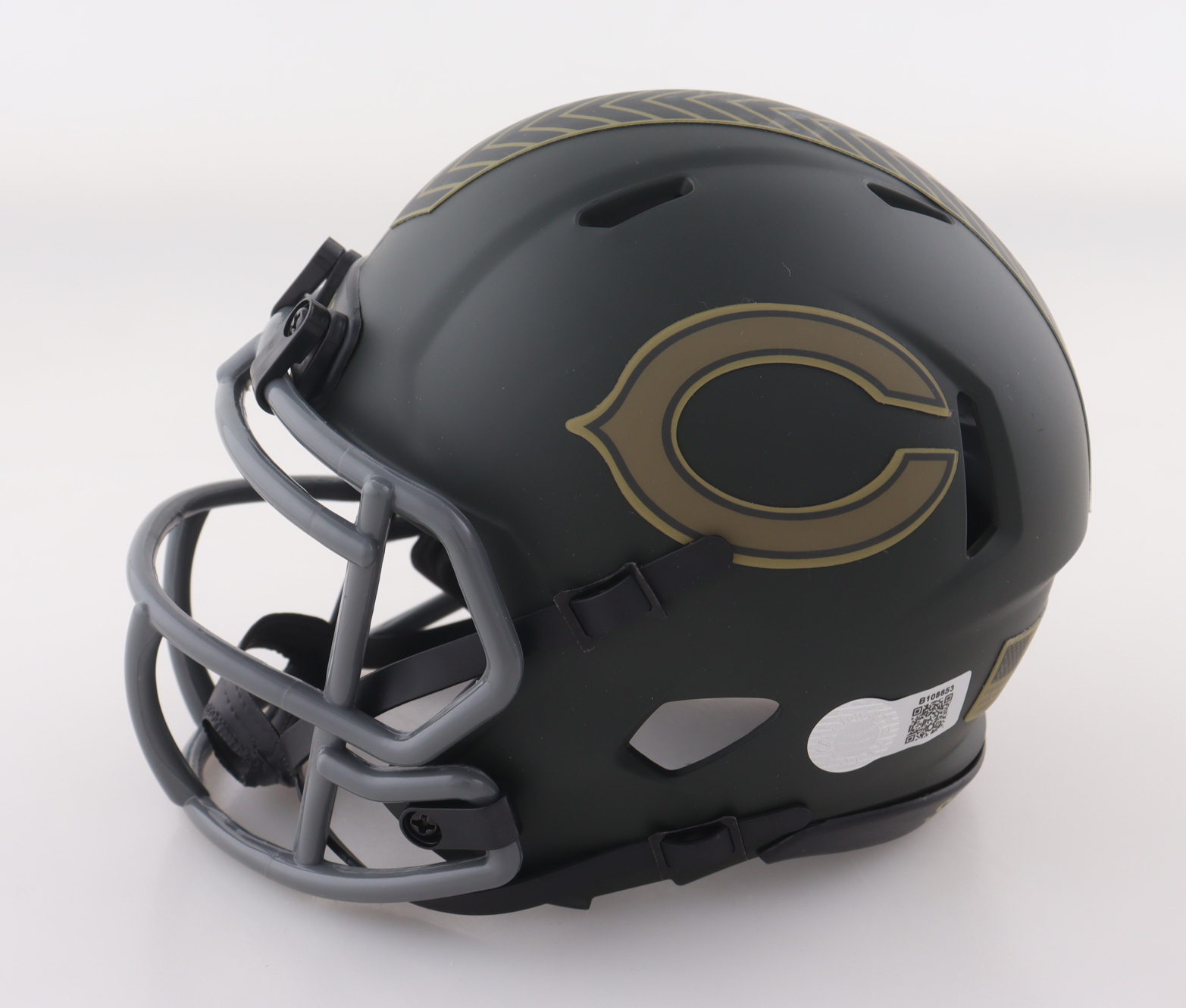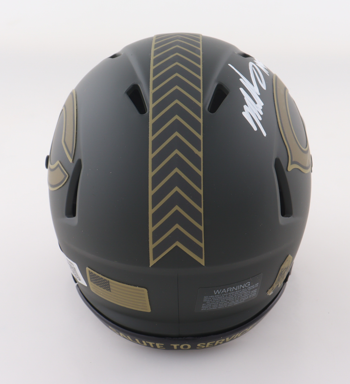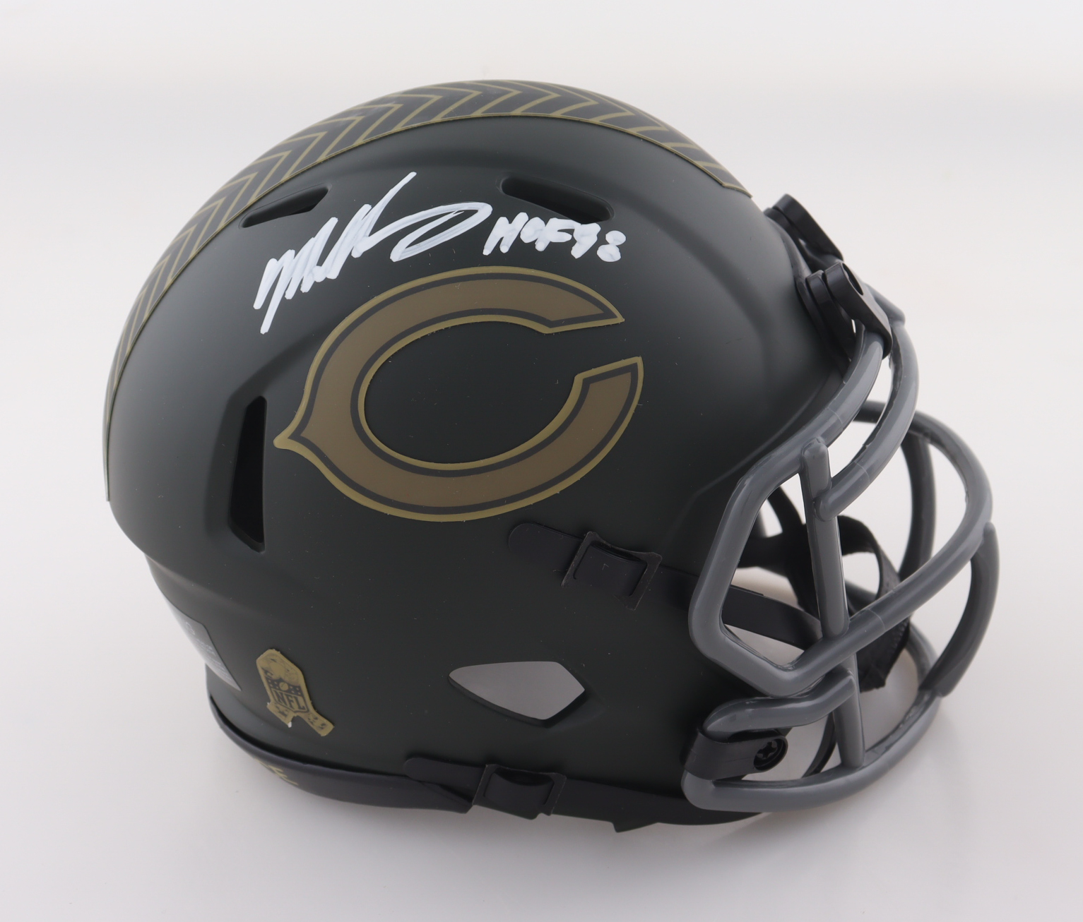 Riddell Chicago Bears Salute To Service Alternate speed mini helmet and inscribed by Mike Singletary (HOF).