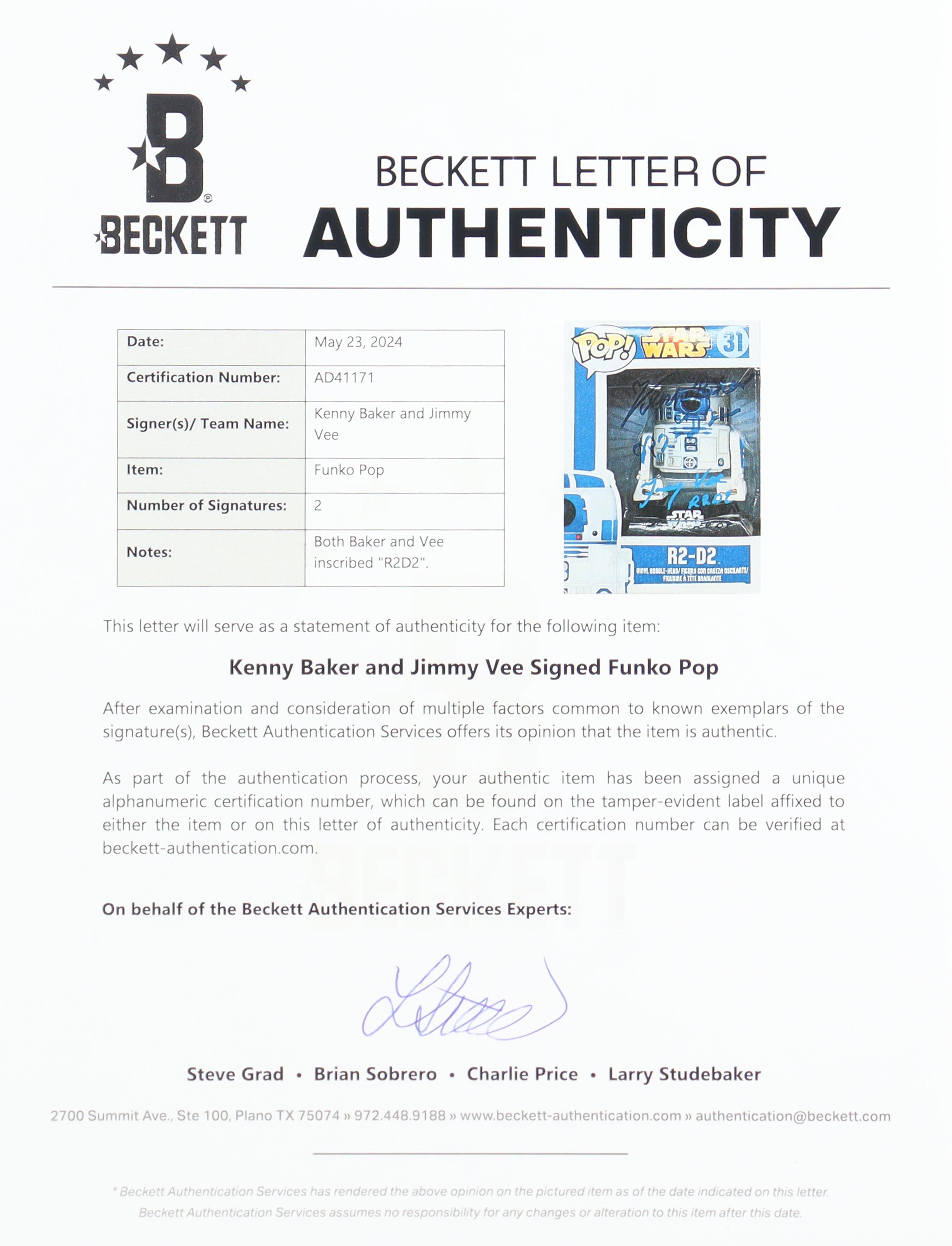 Kenny Baker & Jimmy Vee Signed "Star Wars" #31 R2-D2 Funko Pop! Vinyl Figure Inscribed "R2-D2" (Beckett)