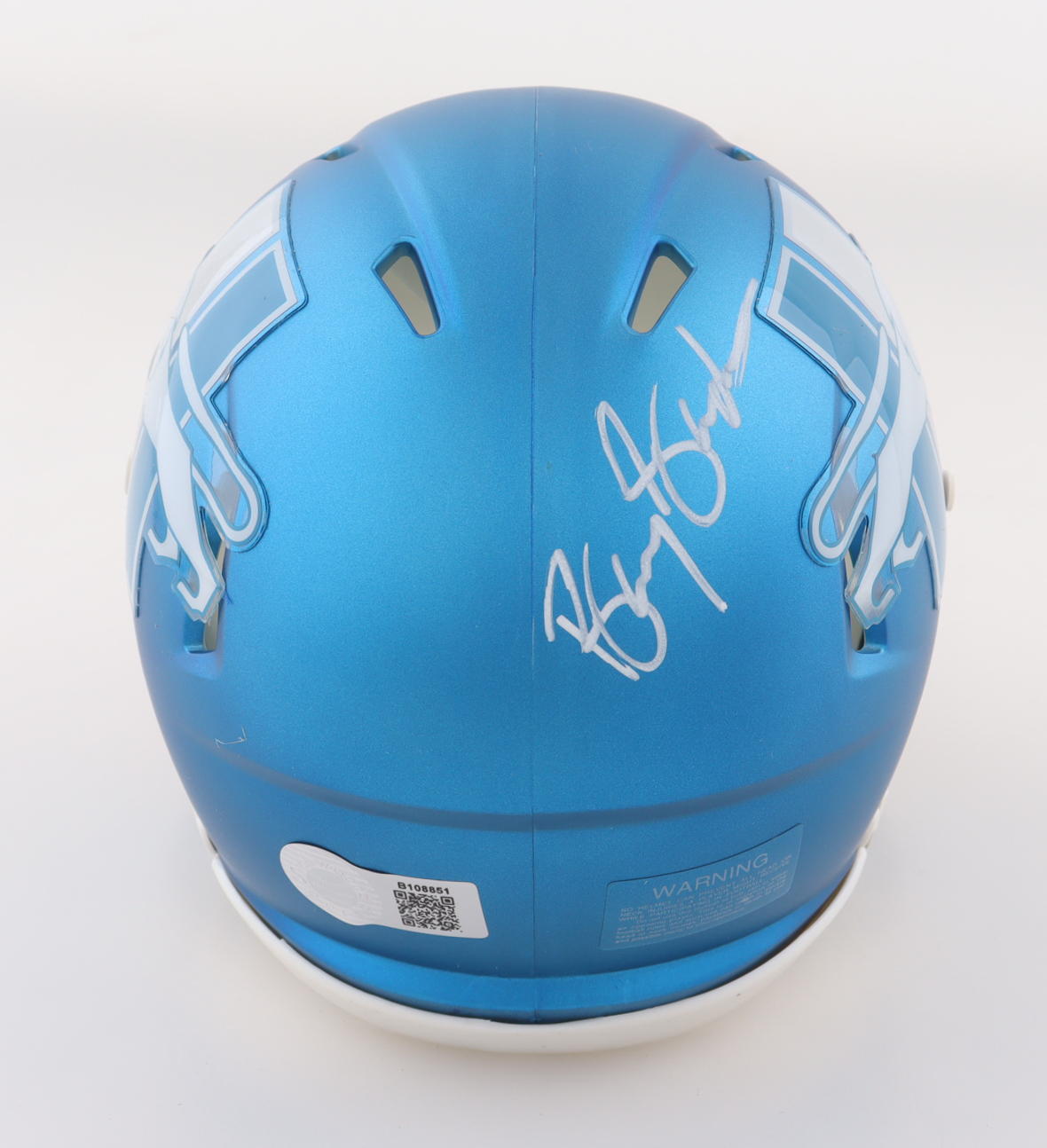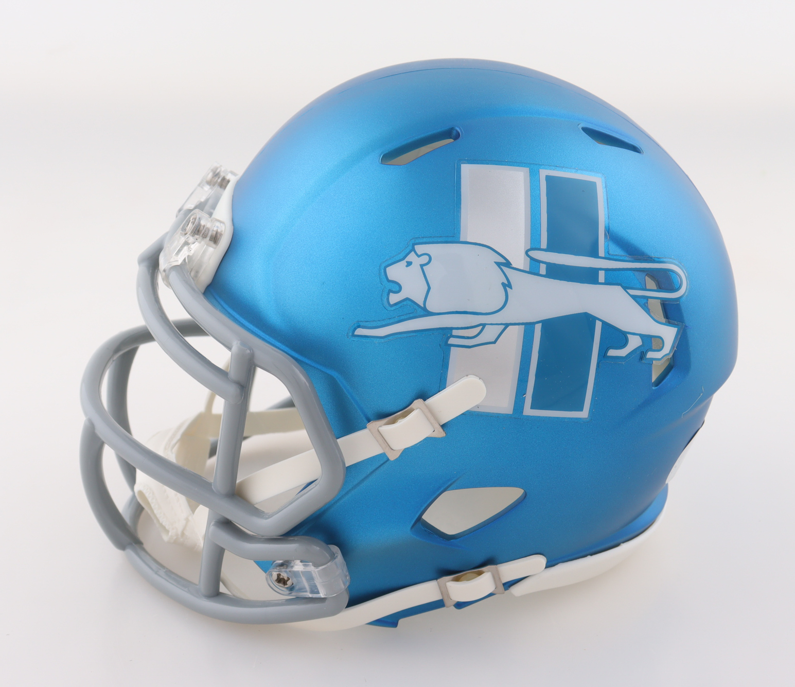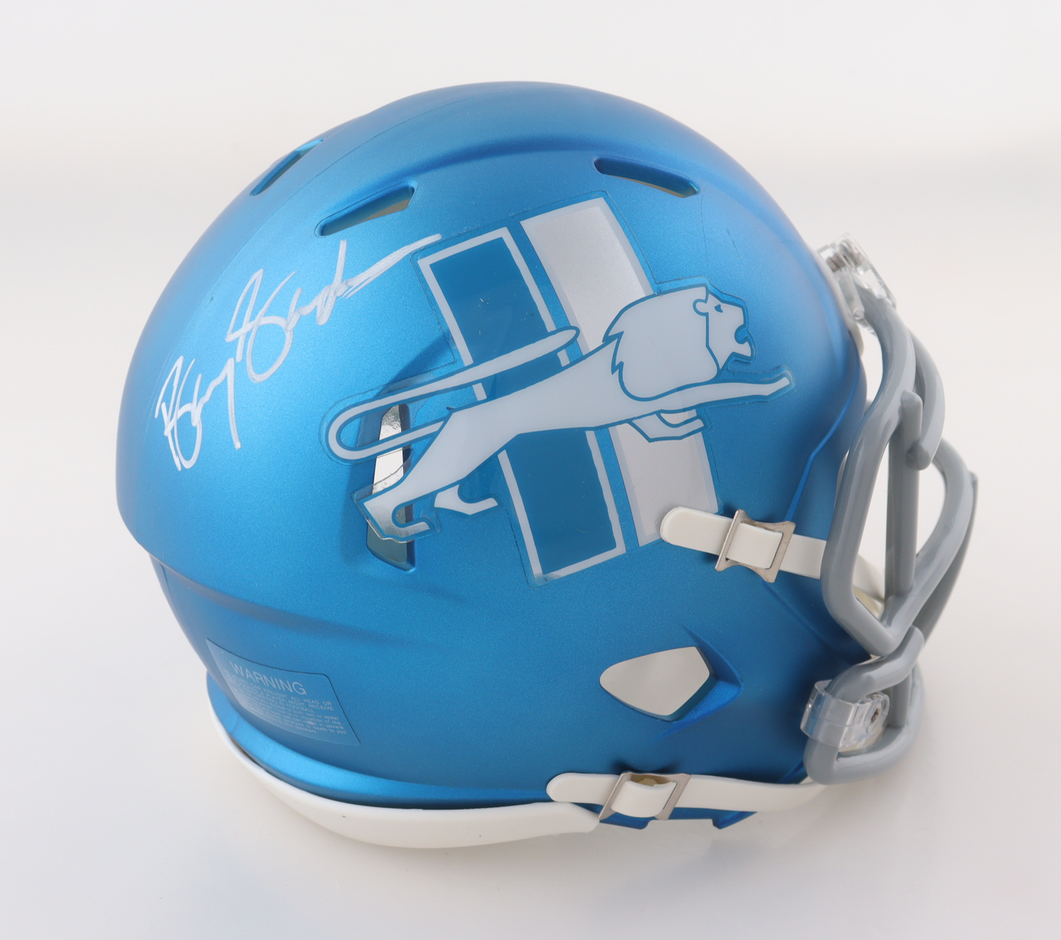 Riddell Detroit Lions Alternate Speed Mini Helmet. Hand-signed by Barry Sanders (HOF).