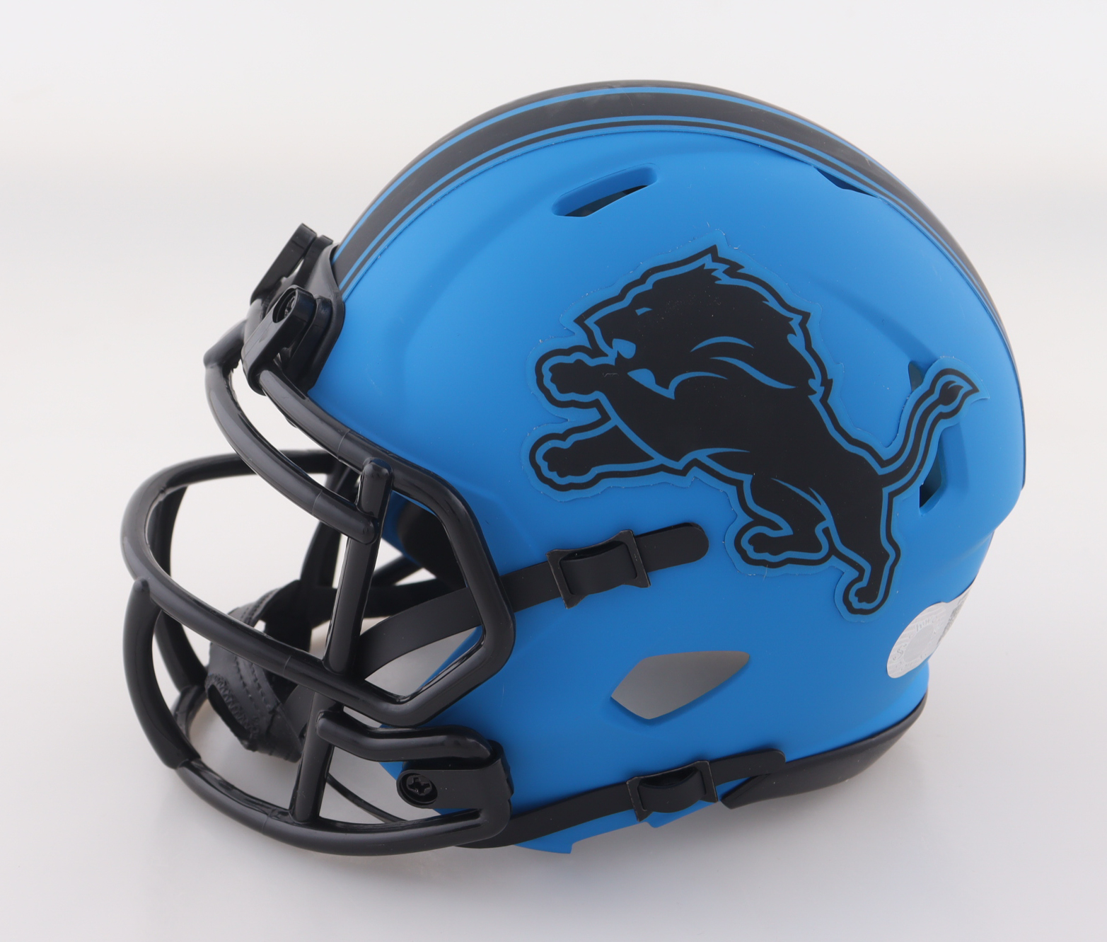 Riddell Detroit Lions Rave Alternate Speed mini helmet. Hand-signed by Barry Sanders (HOF).