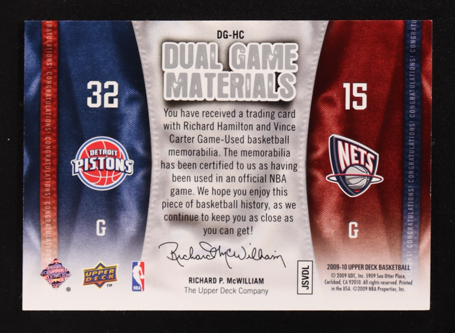 Richard Hamilton / Vince Carter 2009-10 Upper Deck Game Materials Dual #DGHC