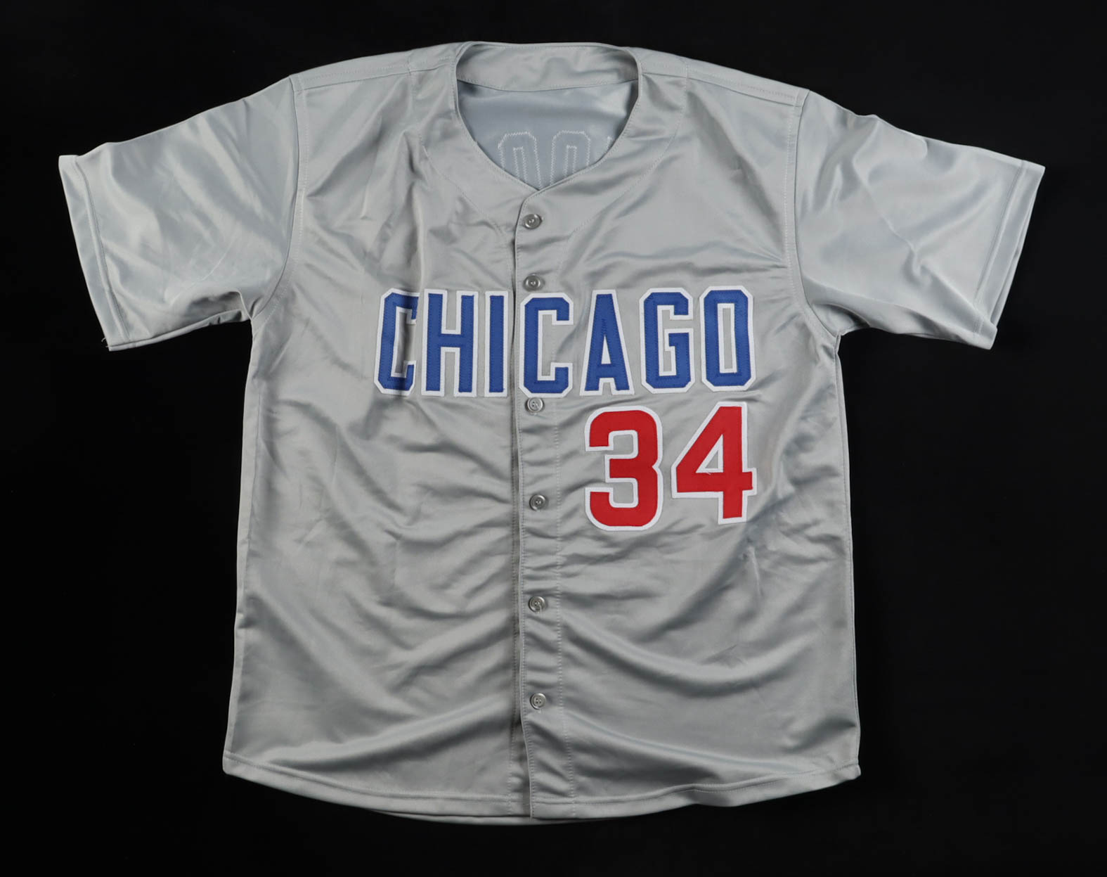 Custom jersey with everything sewn on, size XL. Hand-signed and inscribed by Kerry Wood.
