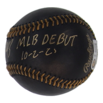 Oneil Cruz Signed Black Leather OML Baseball Inscribed "MLB Debut 10-2-21" (JSA & USA Marketing)