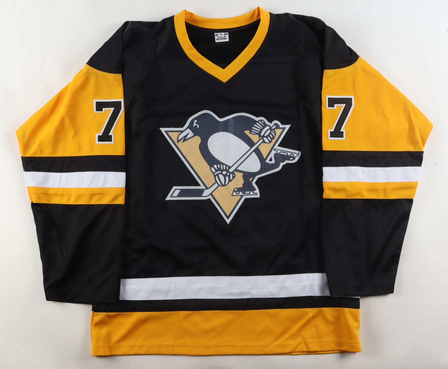 Custom jersey with everything sewn on, size XL. Hand-signed by Paul Coffey (HOF).