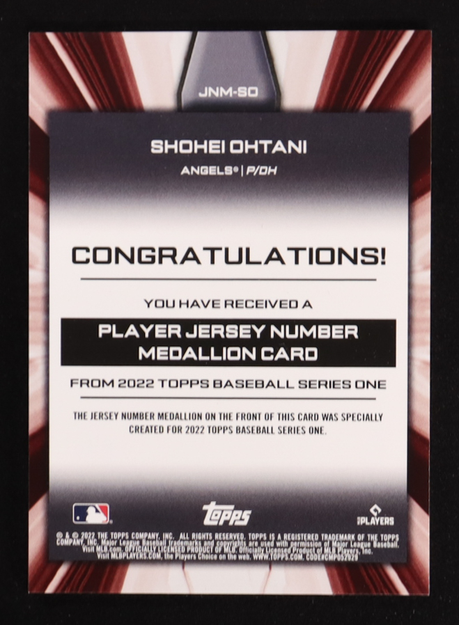 Shohei Ohtani 2022 Topps Commemorative Player Jersey Number Medallions #JNMSO