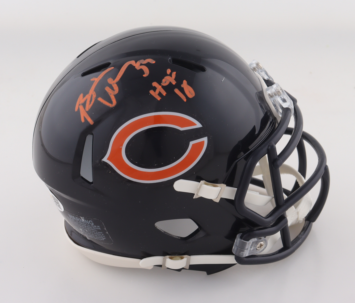 Riddell Chicago Bears Speed mini helmet. Hand-signed and inscribed by Brian Urlacher (HOF).