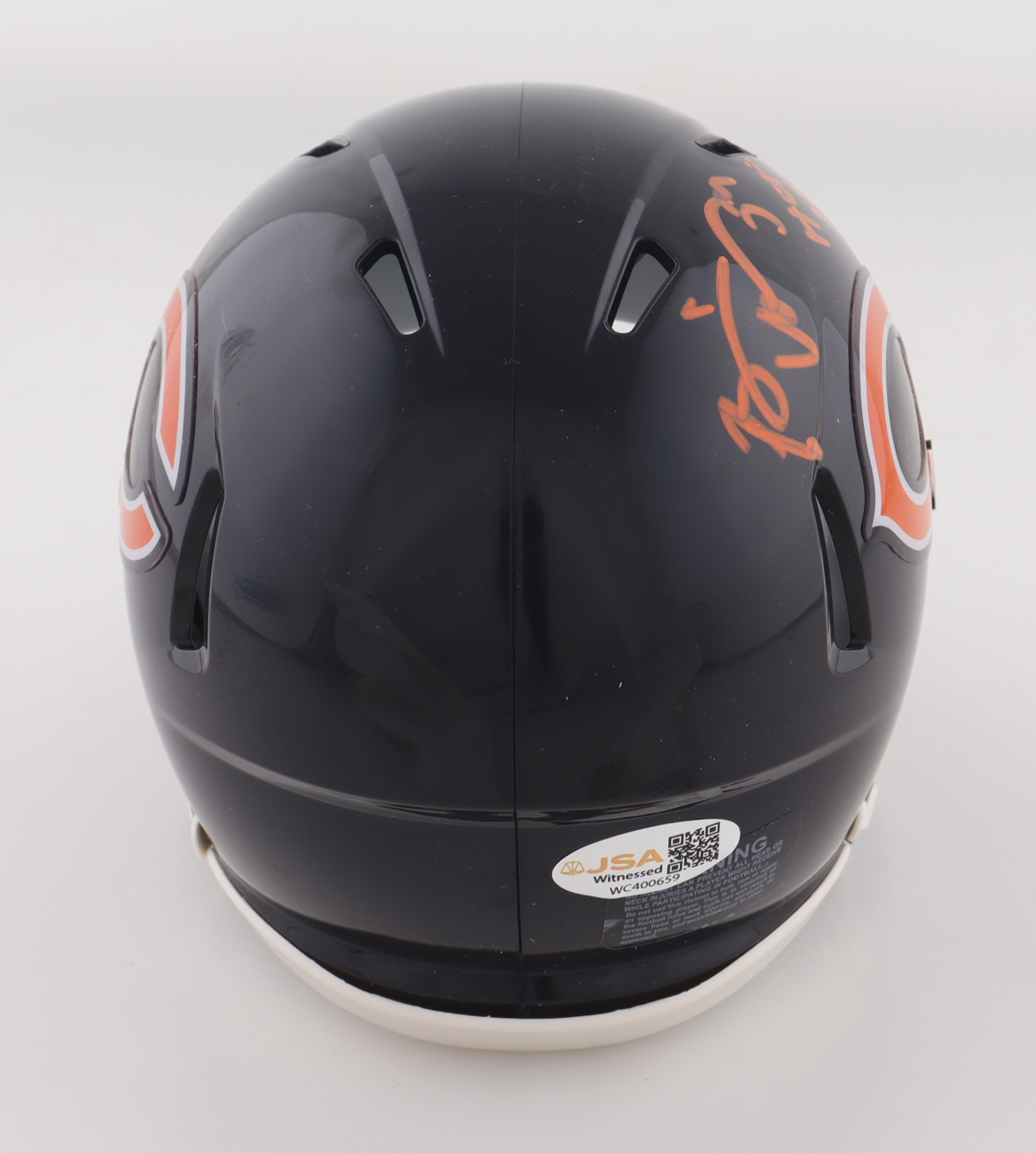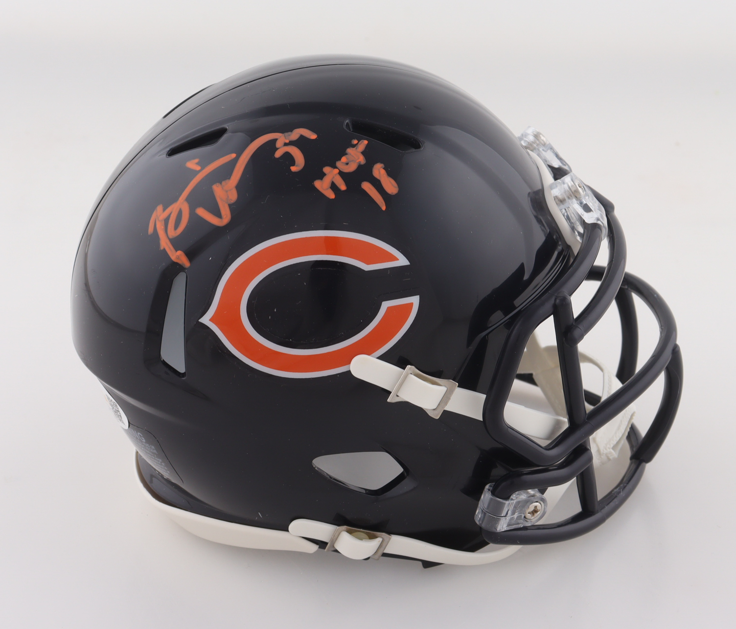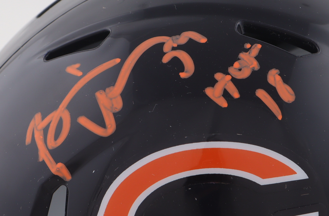 Riddell Chicago Bears Speed mini helmet. Hand-signed and inscribed by Brian Urlacher (HOF).