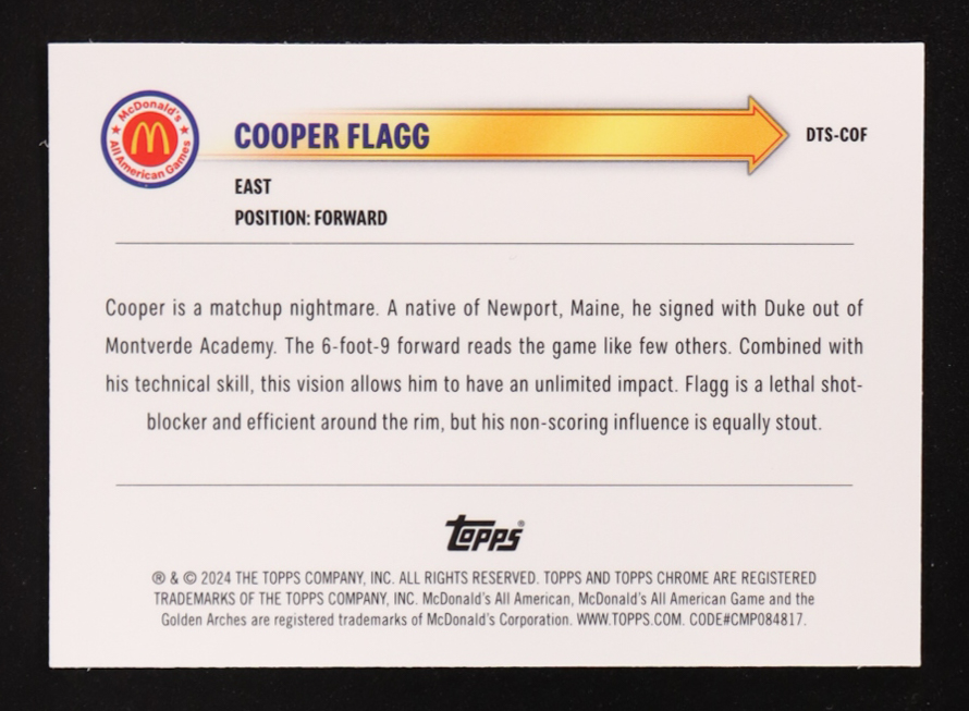 Cooper Flagg 2024 Topps Chrome McDonald's All American Drive Thru Service Blue RayWave Refractors #DTSCOF