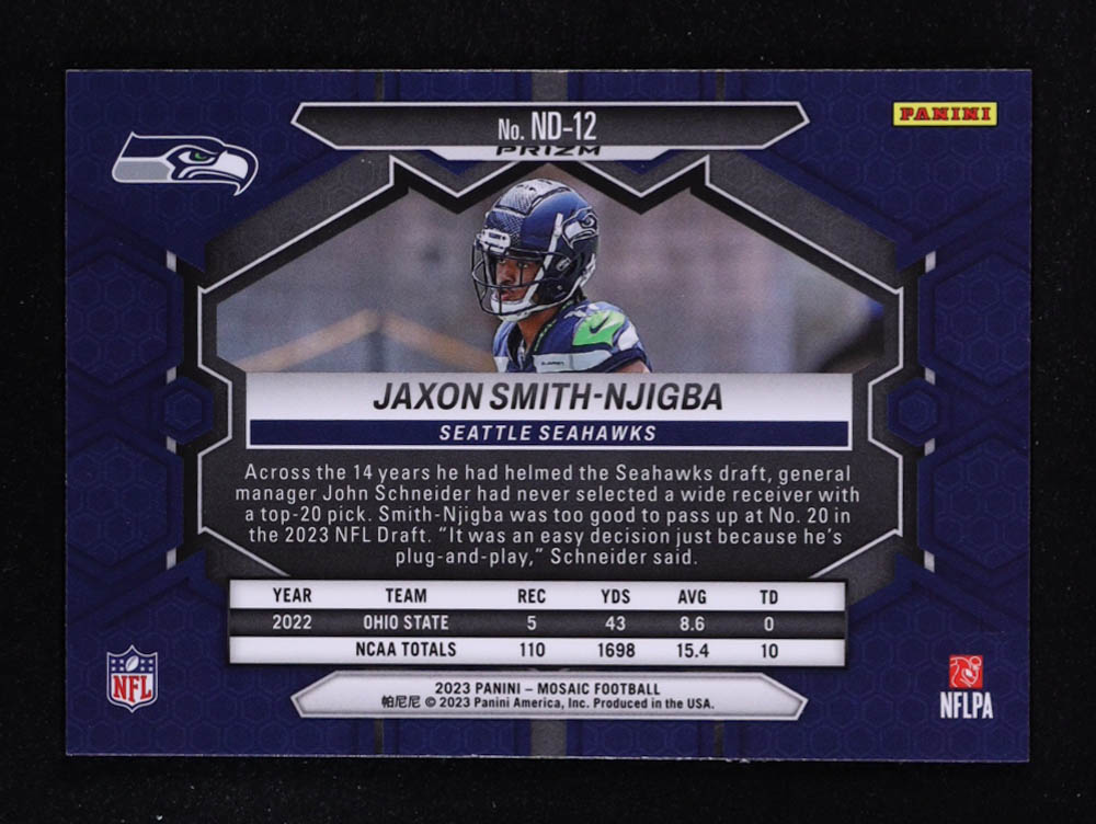 Jaxon Smith-Njigba 2023 Panini Mosaic NFL Debut Mosaic Reactive Yellow #12 RC