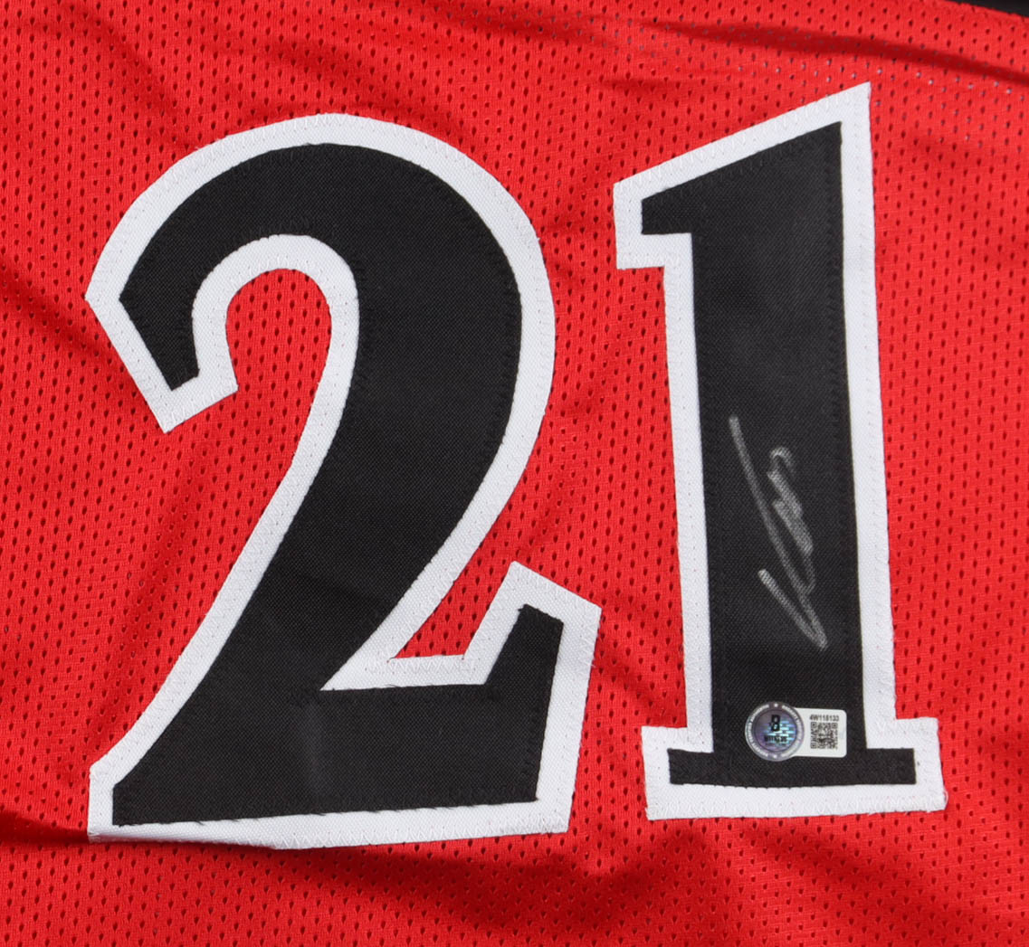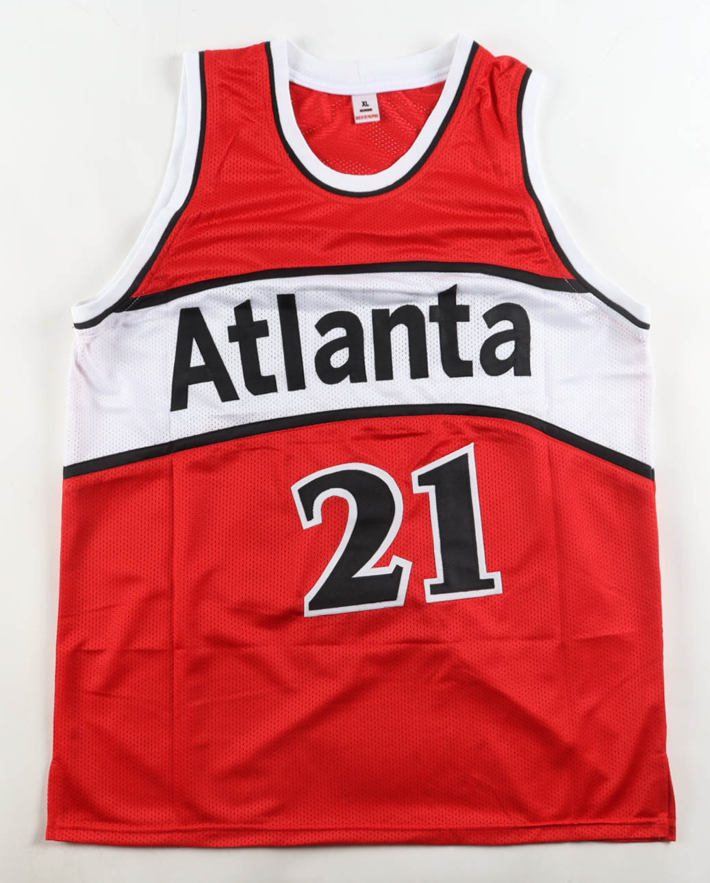 Custom jersey with everything sewn on, size XL. Hand-signed by Dominique Wilkins.