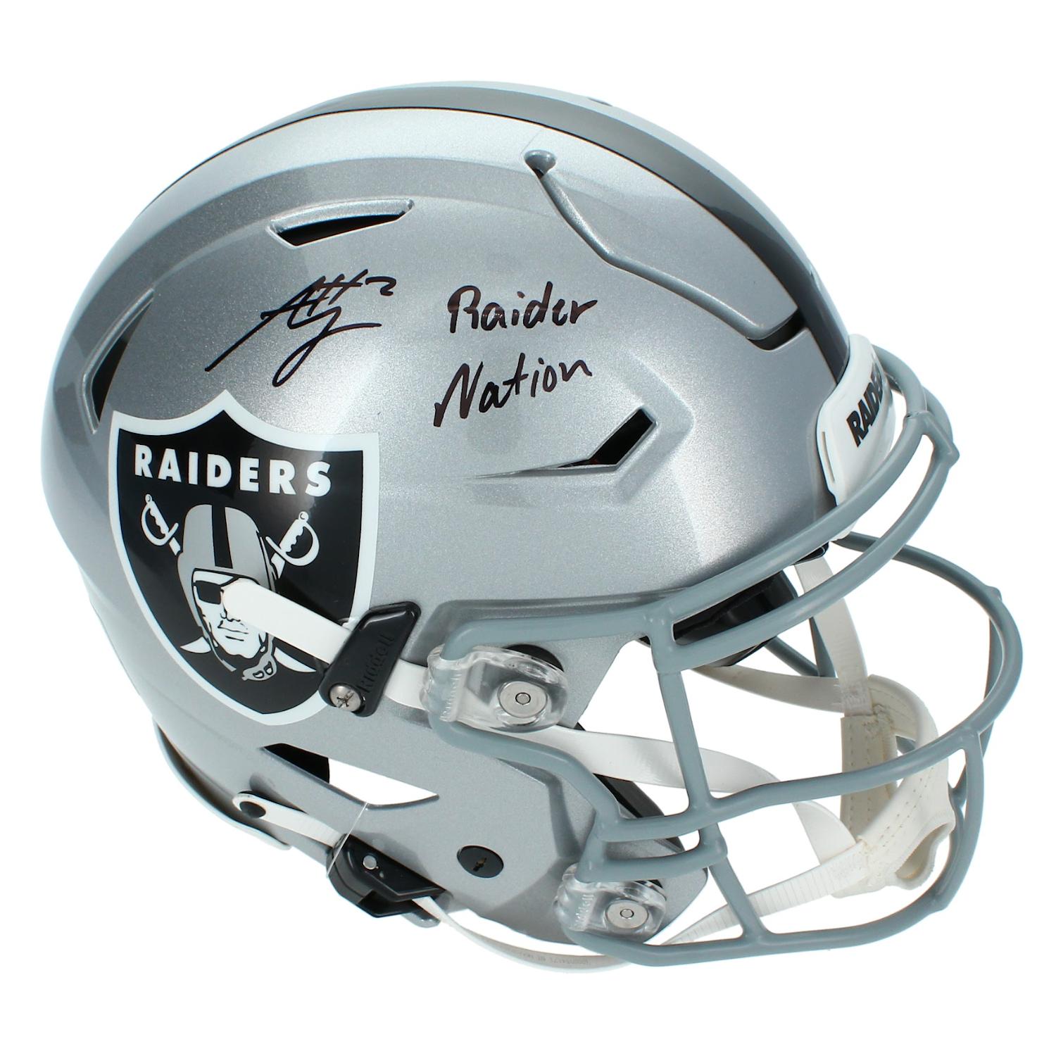 Riddell Las Vegas Raiders full-size authentic on-field speedflex helmet has been hand-signed by Ashton Jeanty.