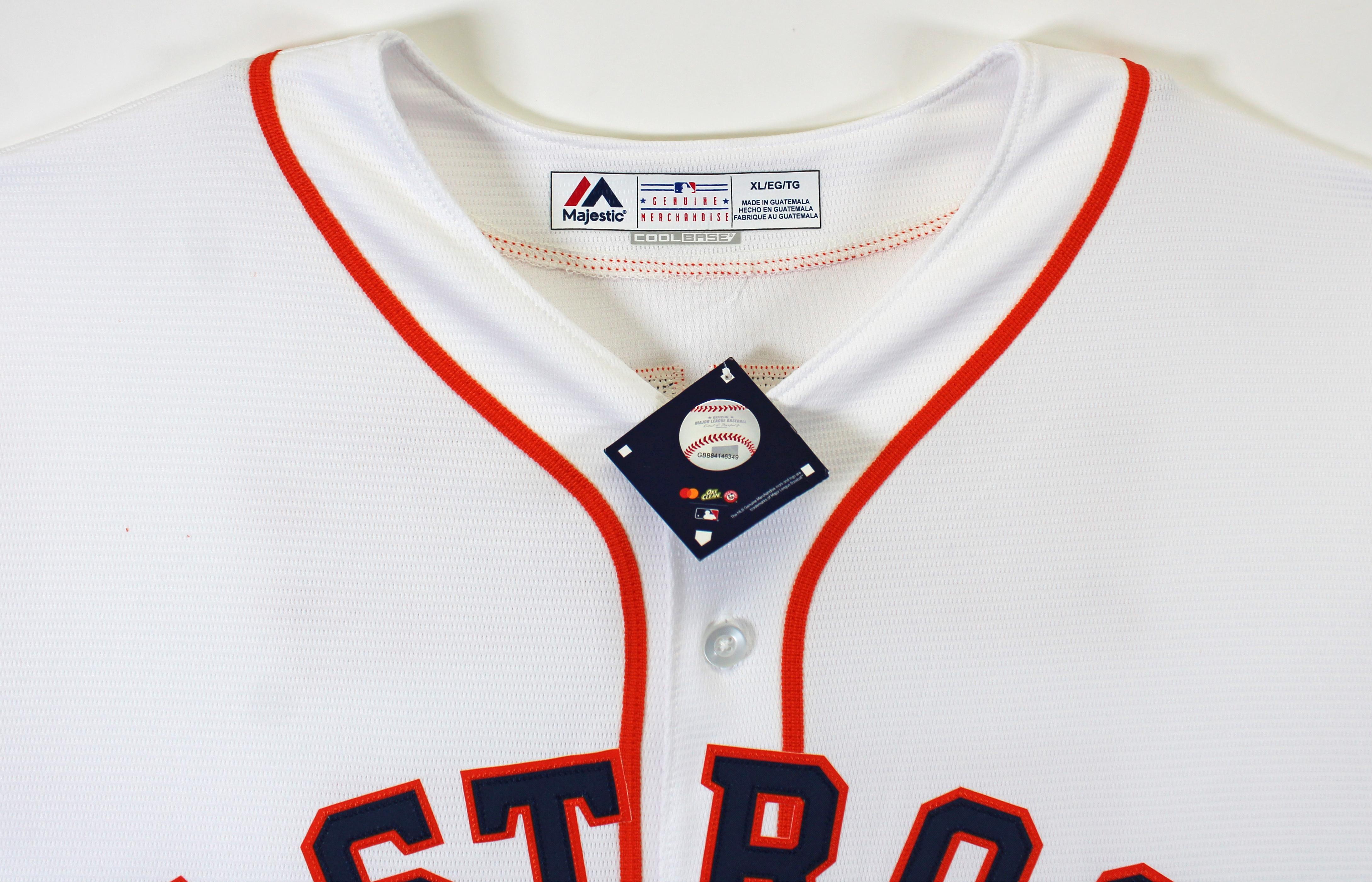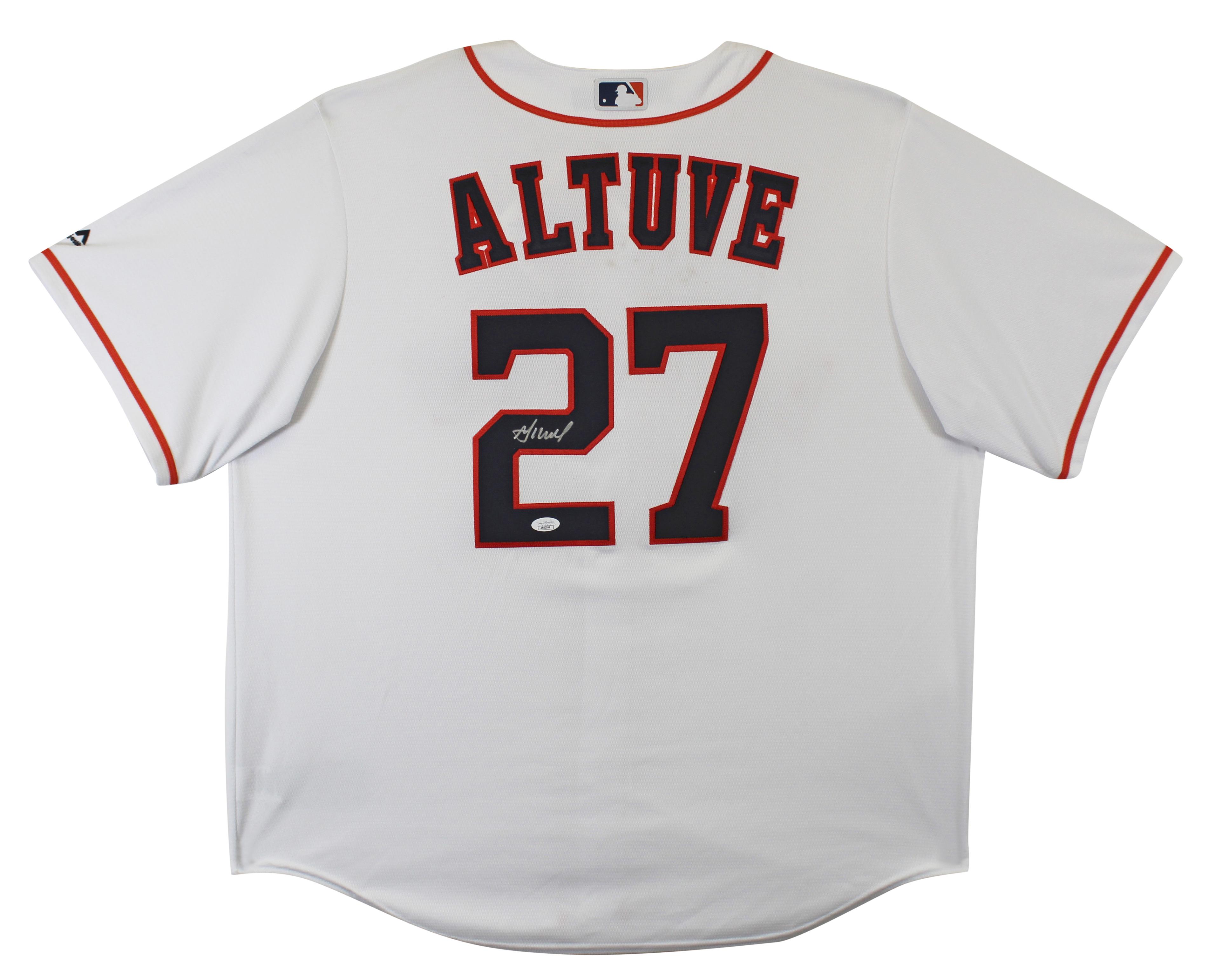 Majestic style jersey with everything sewn on, size XL. Hand-signed by Jose Altuve (Houston Astros).