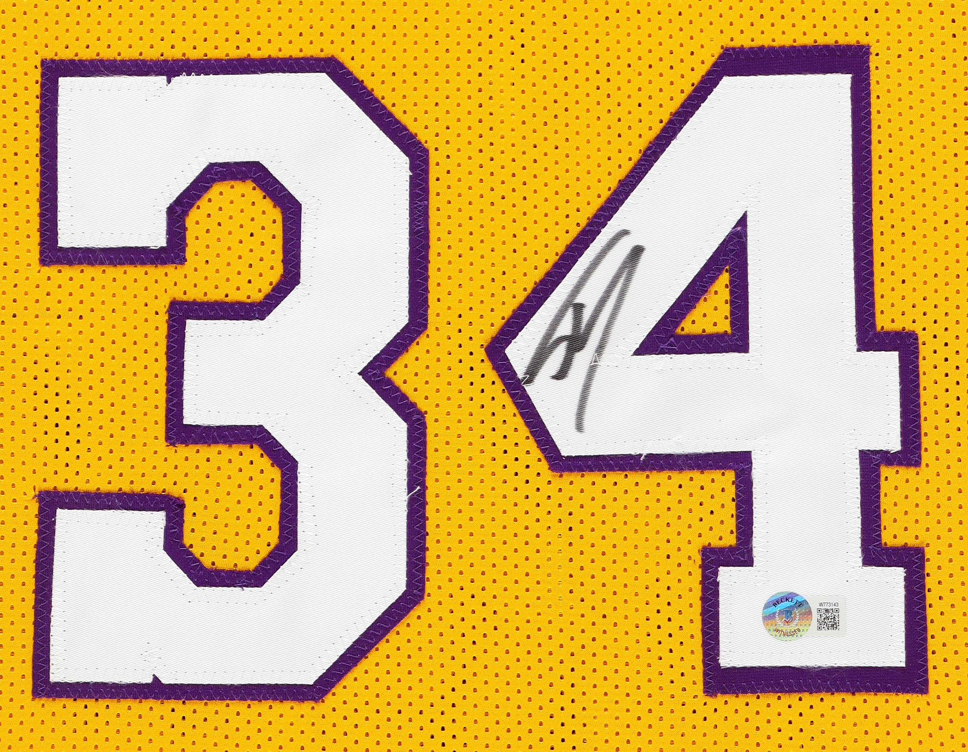 Custom frame measures 32" x 37" in size and features a jersey that has been hand-signed by Shaquille O'Neal (HOF).