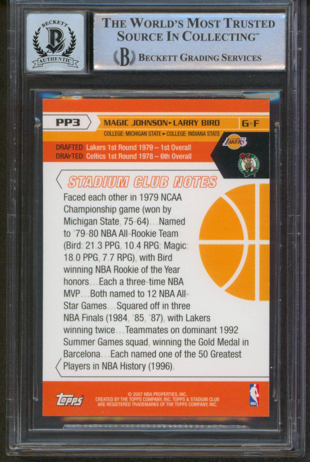 Magic Johnson & Larry Bird Signed 2007-08 Stadium Club Promos #PP3 (BGS | Auto 10)