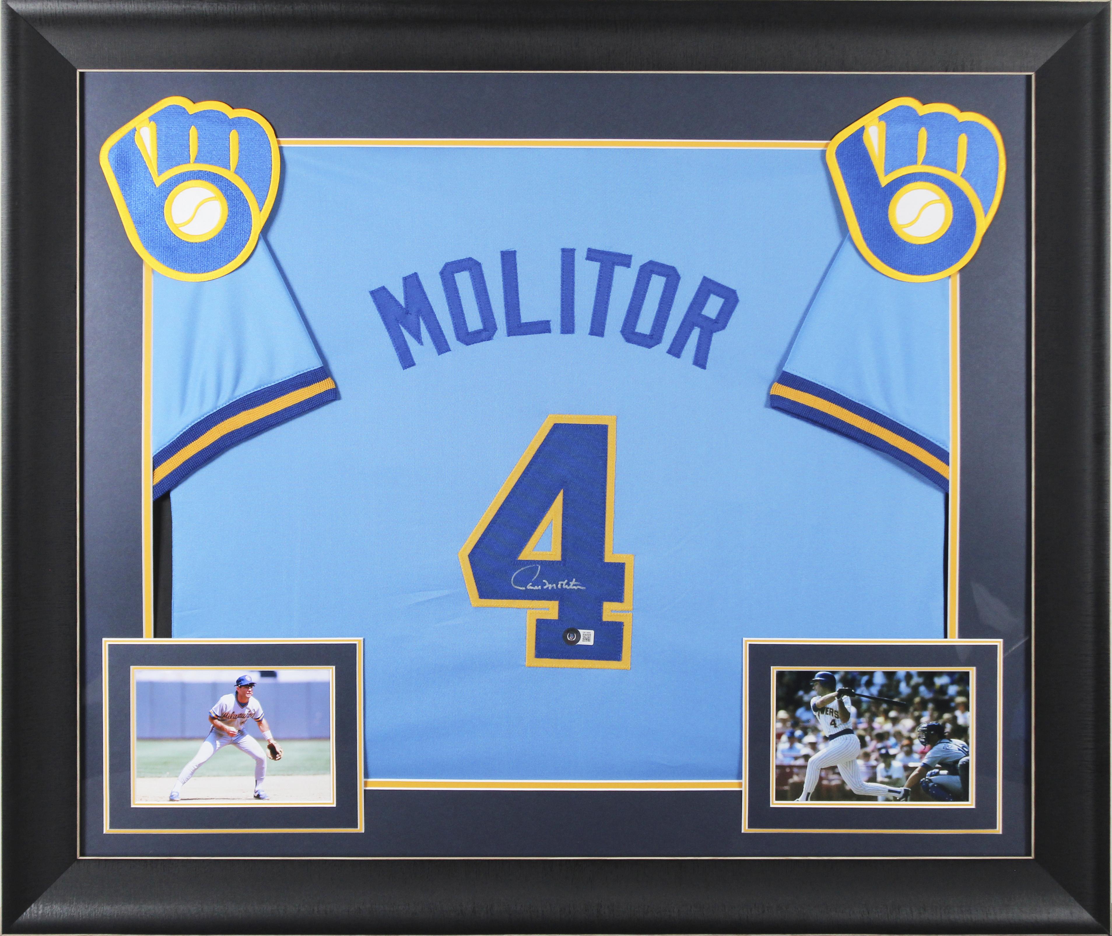 Custom frame measures 32" x 37" in size and features a jersey that has been hand-signed by Paul Molitor (HOF).