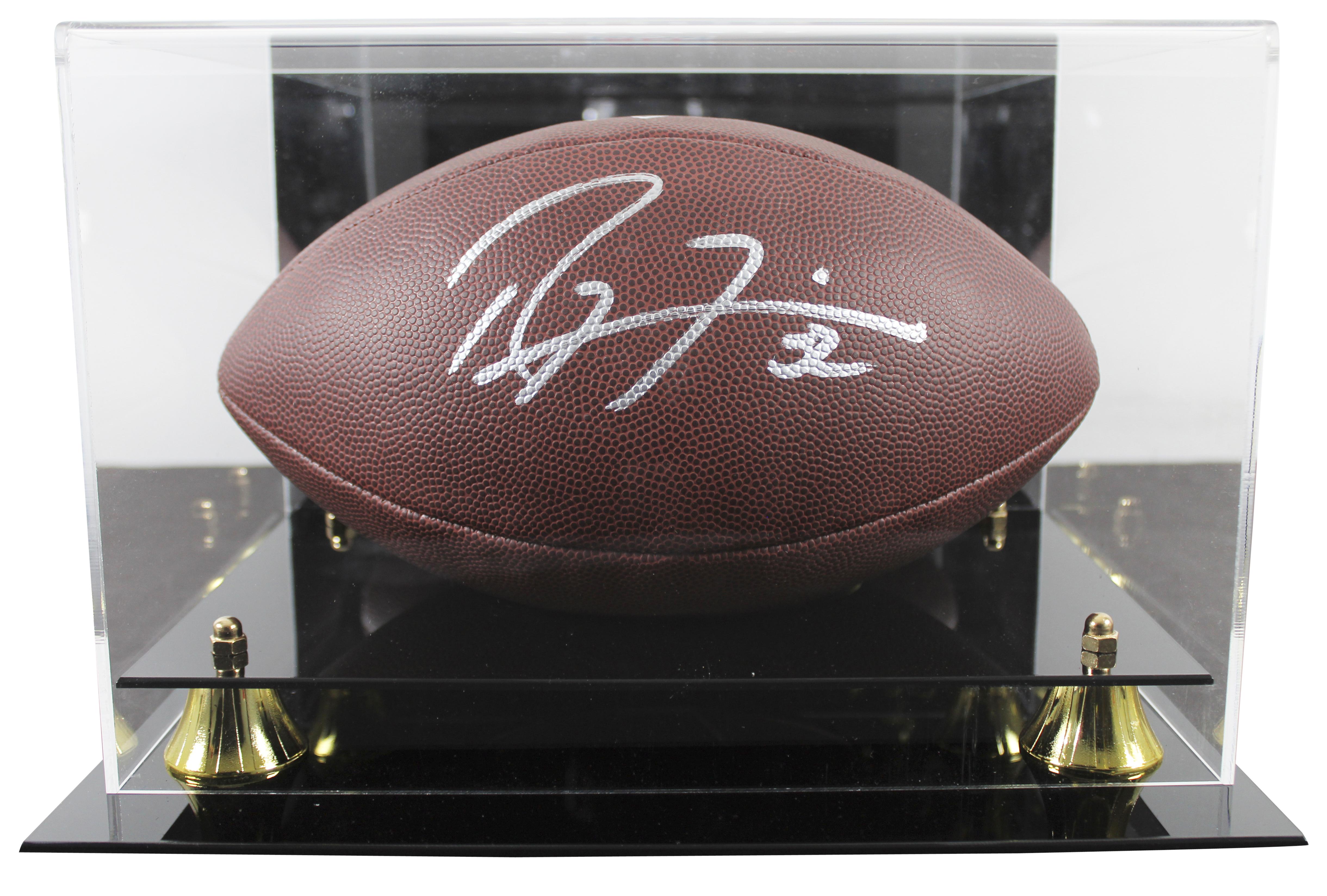 Wilson NFL Super Grip Cover football has been hand-signed by Ray Lewis (Baltimore Ravens, HOF). Display case is included as shown.