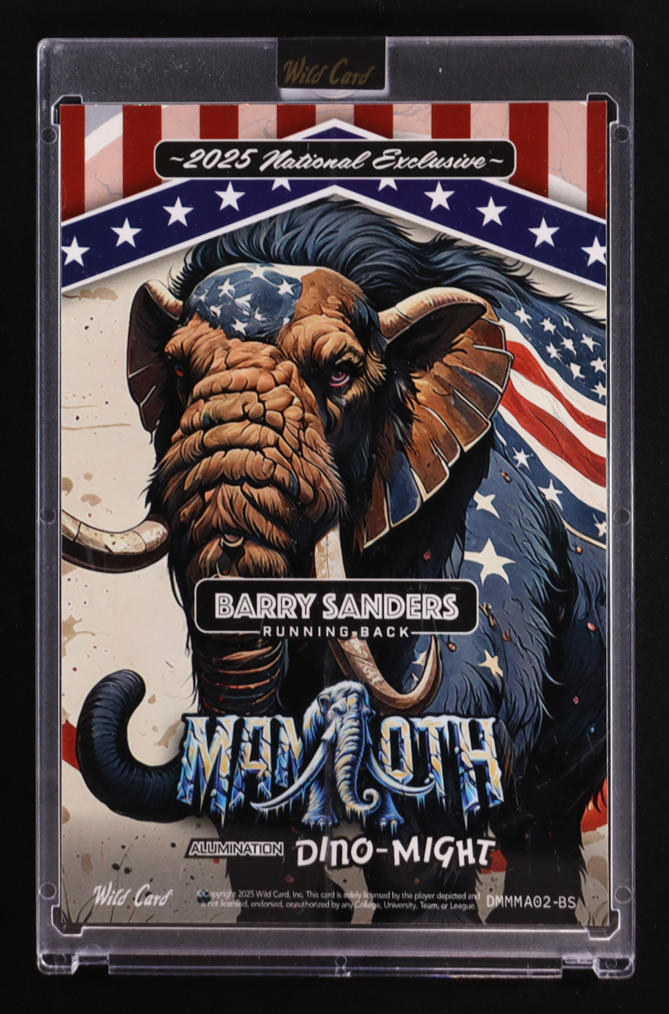 Barry Sanders 2025 Wild Card Alumination Dino-Might National Exclusive Mammoth Red White and Blue Sparkles #DMMMA02-BS #1/1