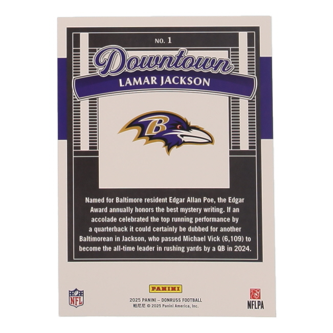 Lamar Jackson 2025 Donruss Downtown! Oversized #1