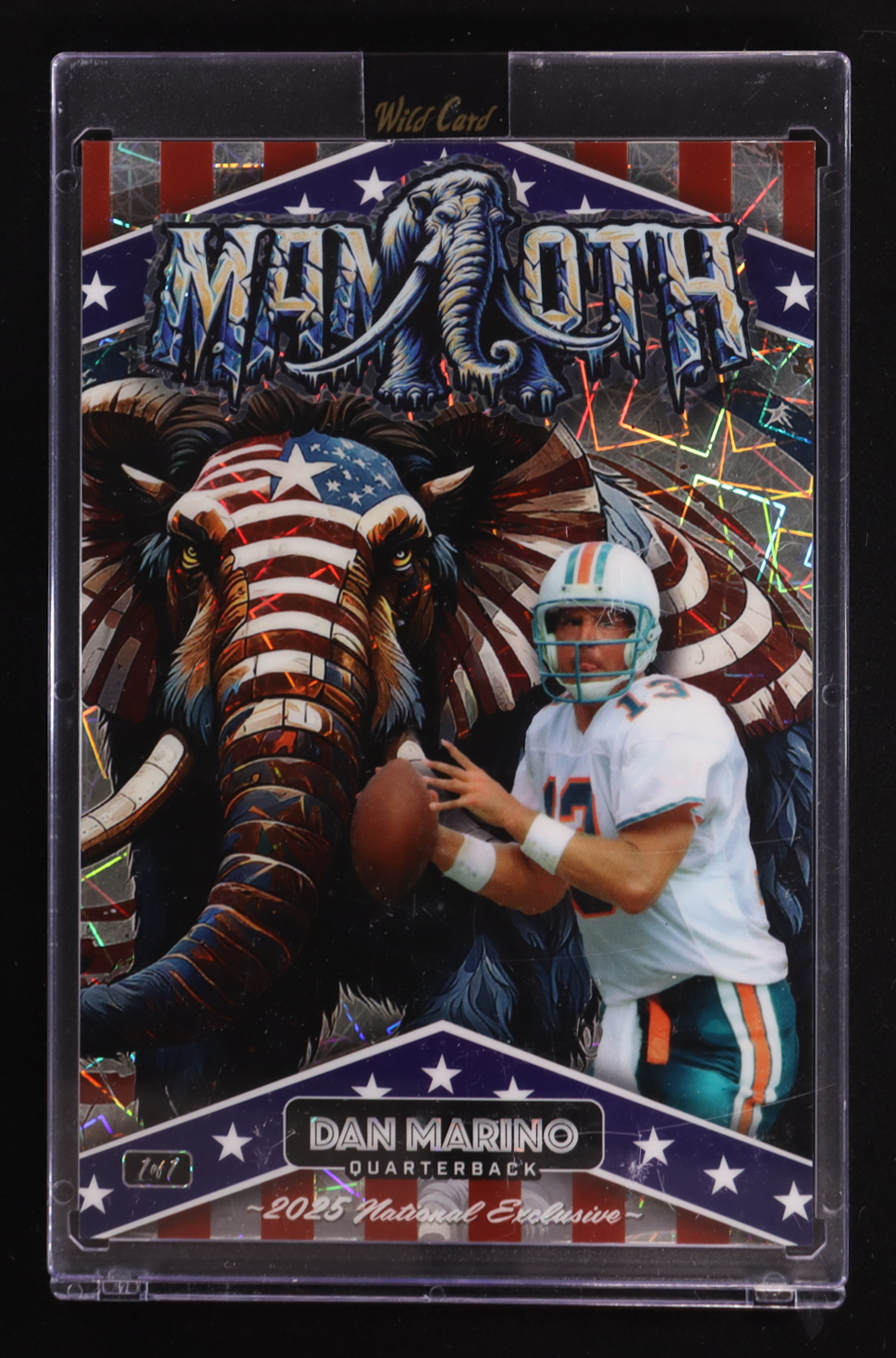 Dan Marino 2025 Wild Card Alumination Dino-Might National Exclusive Mammoth Red White and Blue Lazer #DMMMB02-DM #1/1