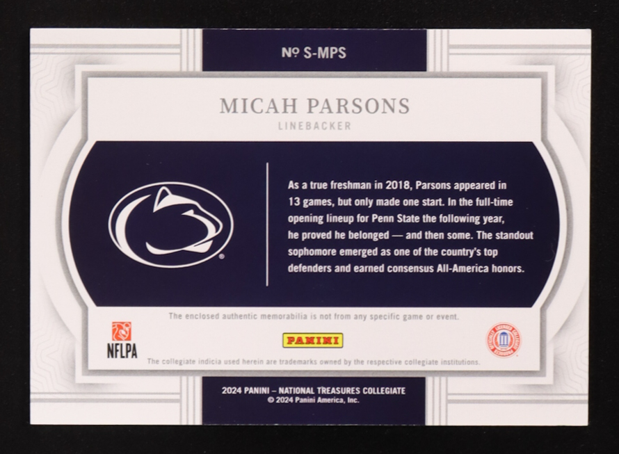 Micah Parsons 2024 Panini National Treasures Collegiate Silhouettes Blue #12 #25/75