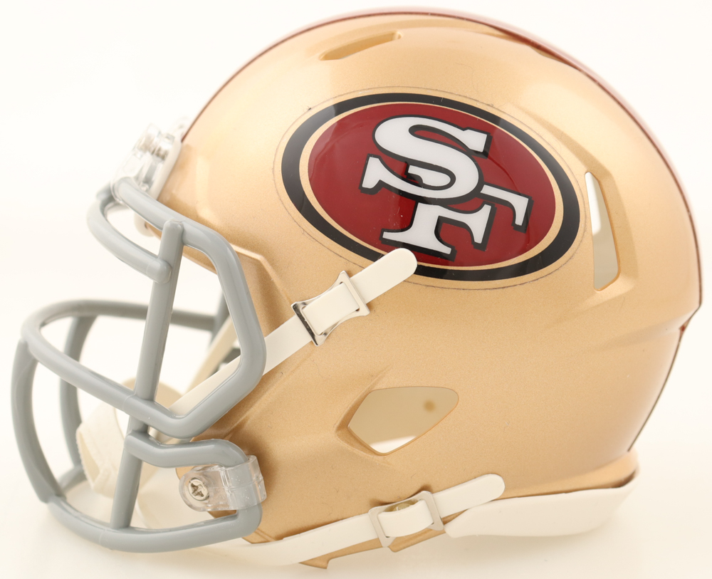 Riddell San Fransisco 49ers Speed mini helmet has been hand-signed by Brandon Aiyuk.