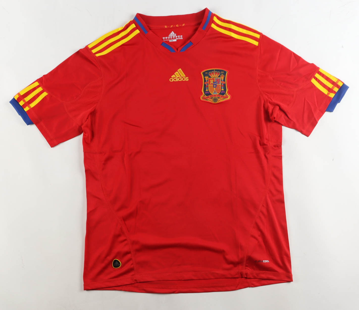 Adidas authentic jersey with everything pressed on, size XL. Hand-signed by David Villa (Spain National Football Team).