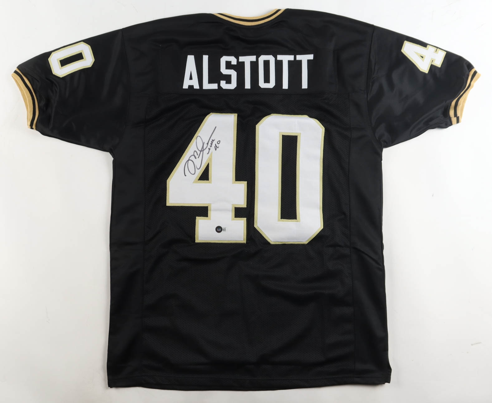 Custom jersey with everything sewn on, size XL. Hand-signed by Mike Alstott.