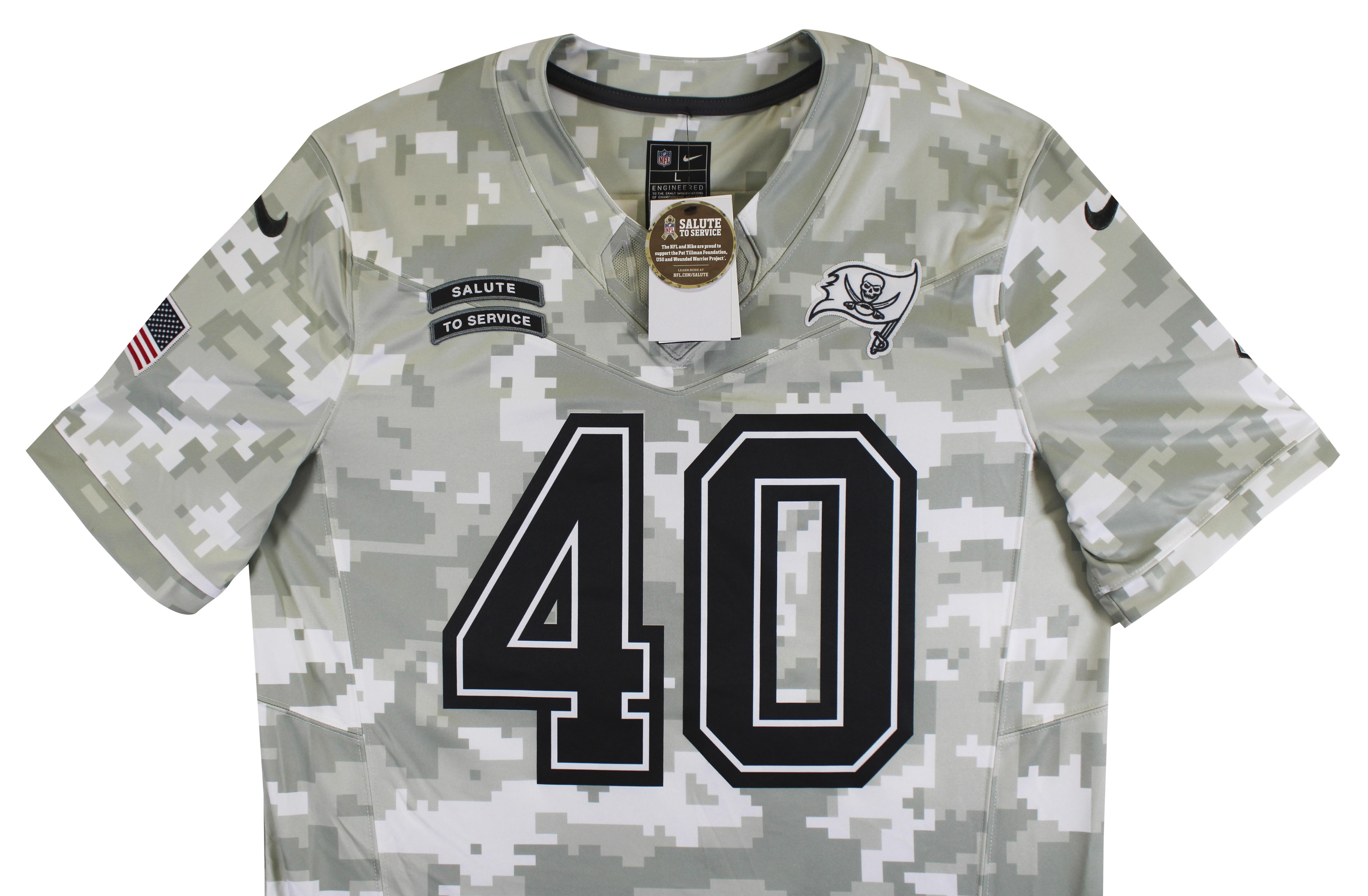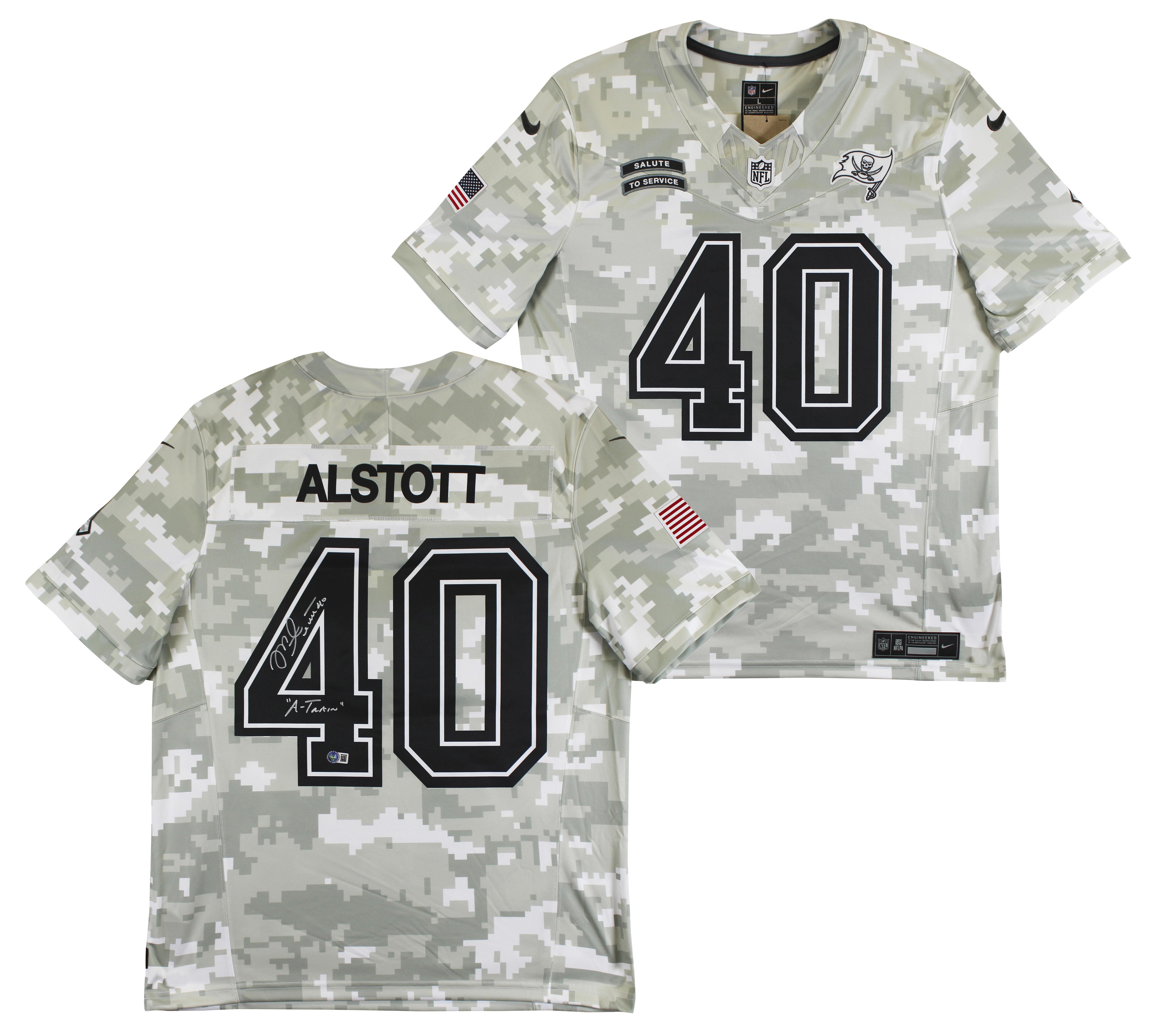 Mike Alstott Signed Buccaneers Salute to Service Nike Authentic Jersey Inscribed "A-Train" (Beckett)