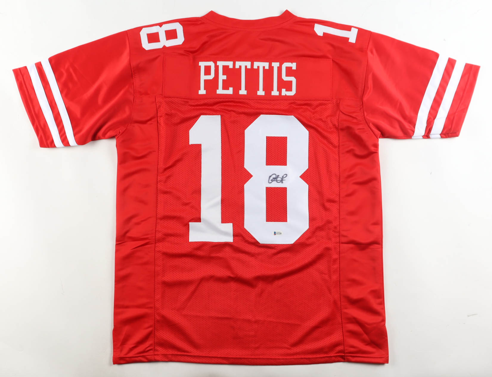 Custom jersey. Everything is sewn on, size XL. Hand-signed by Dante Pettis.