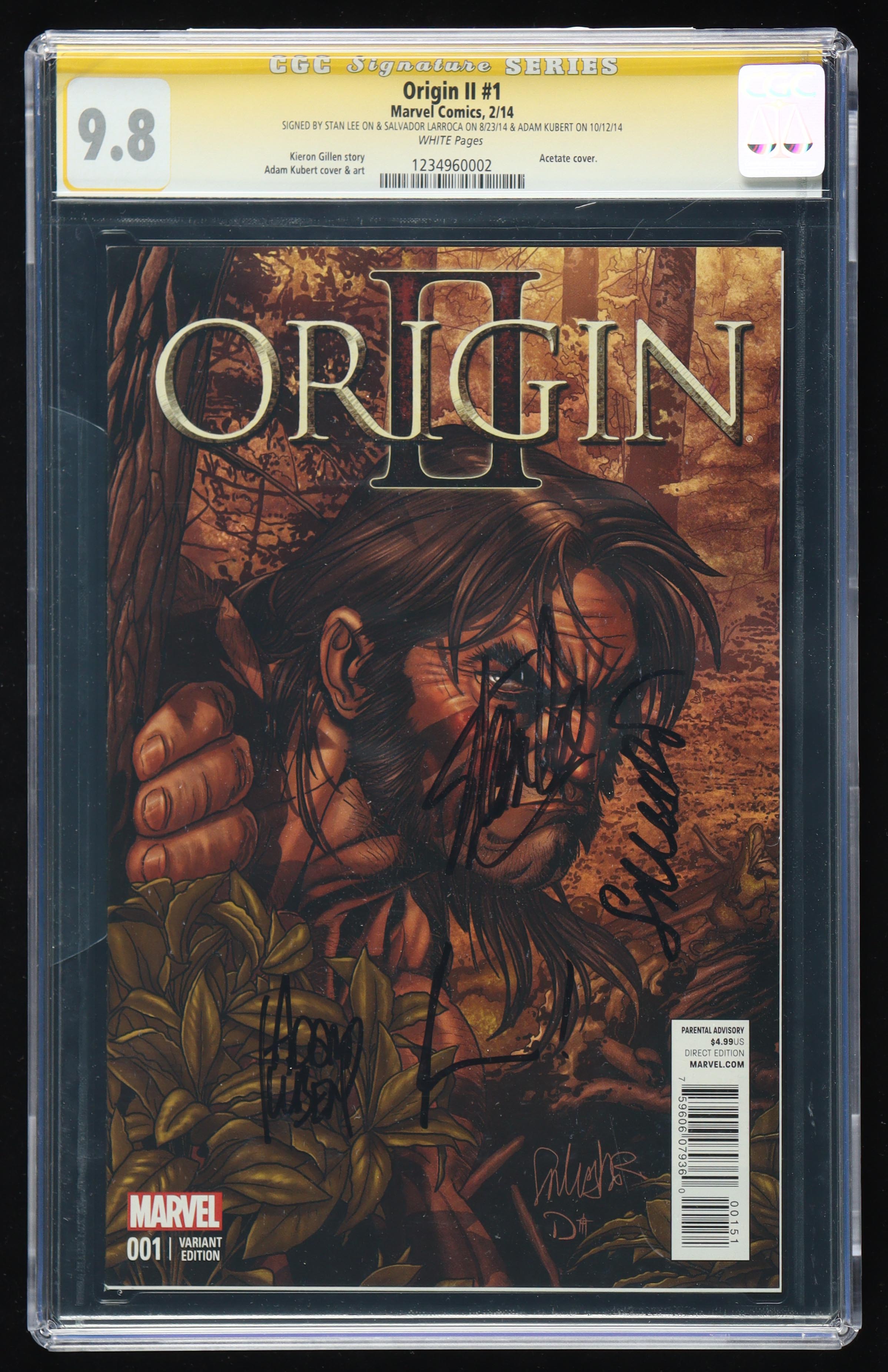 Stan Lee, Salvador Larroca & Adam Kubert Signed 2014 "Origin II" #1 Marvel Comic Book (CGC 9.8)