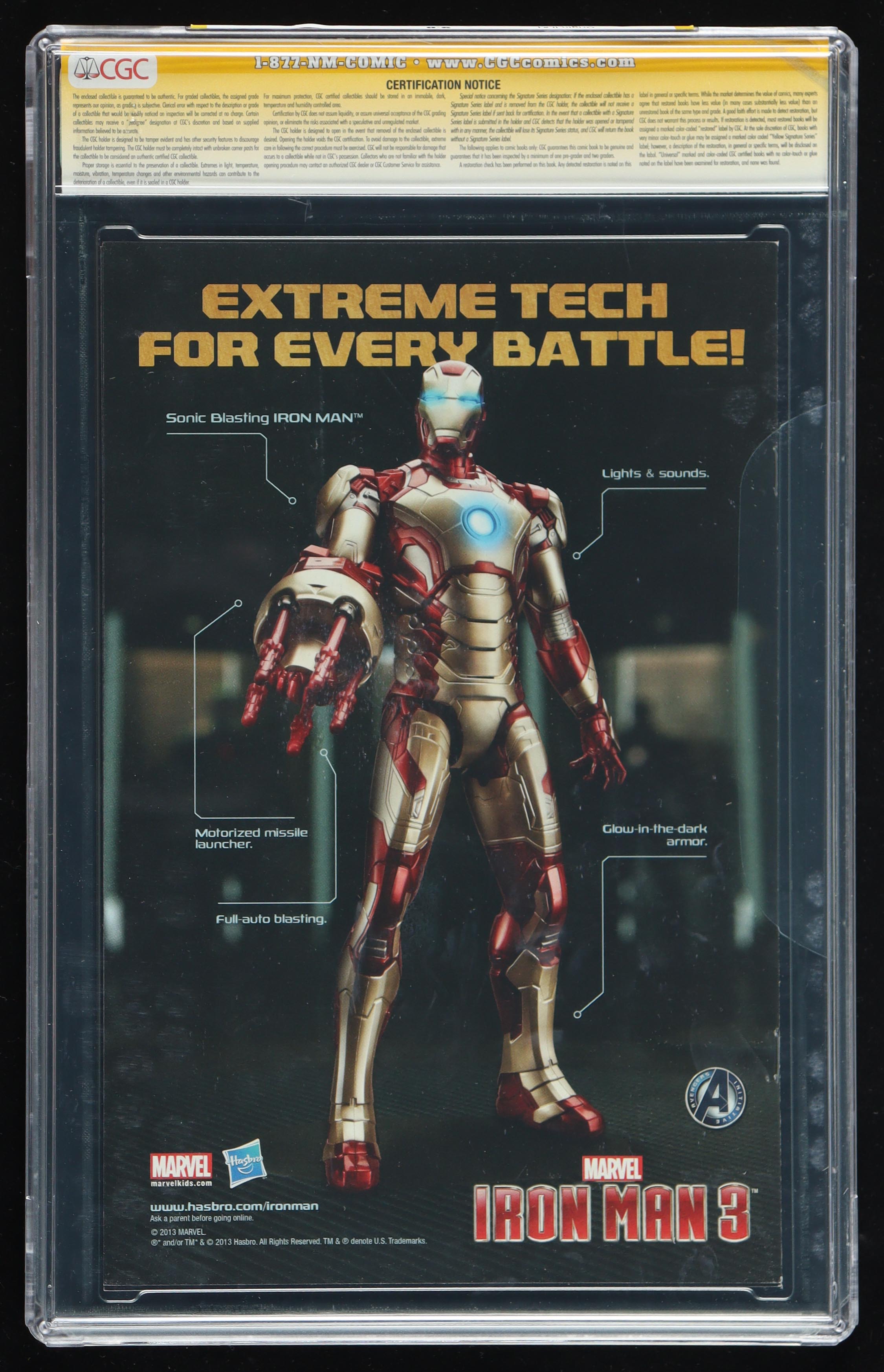 The comic book has been authenticated and encapsulated by Certified Guaranty Company (CGC) for authenticity purposes.