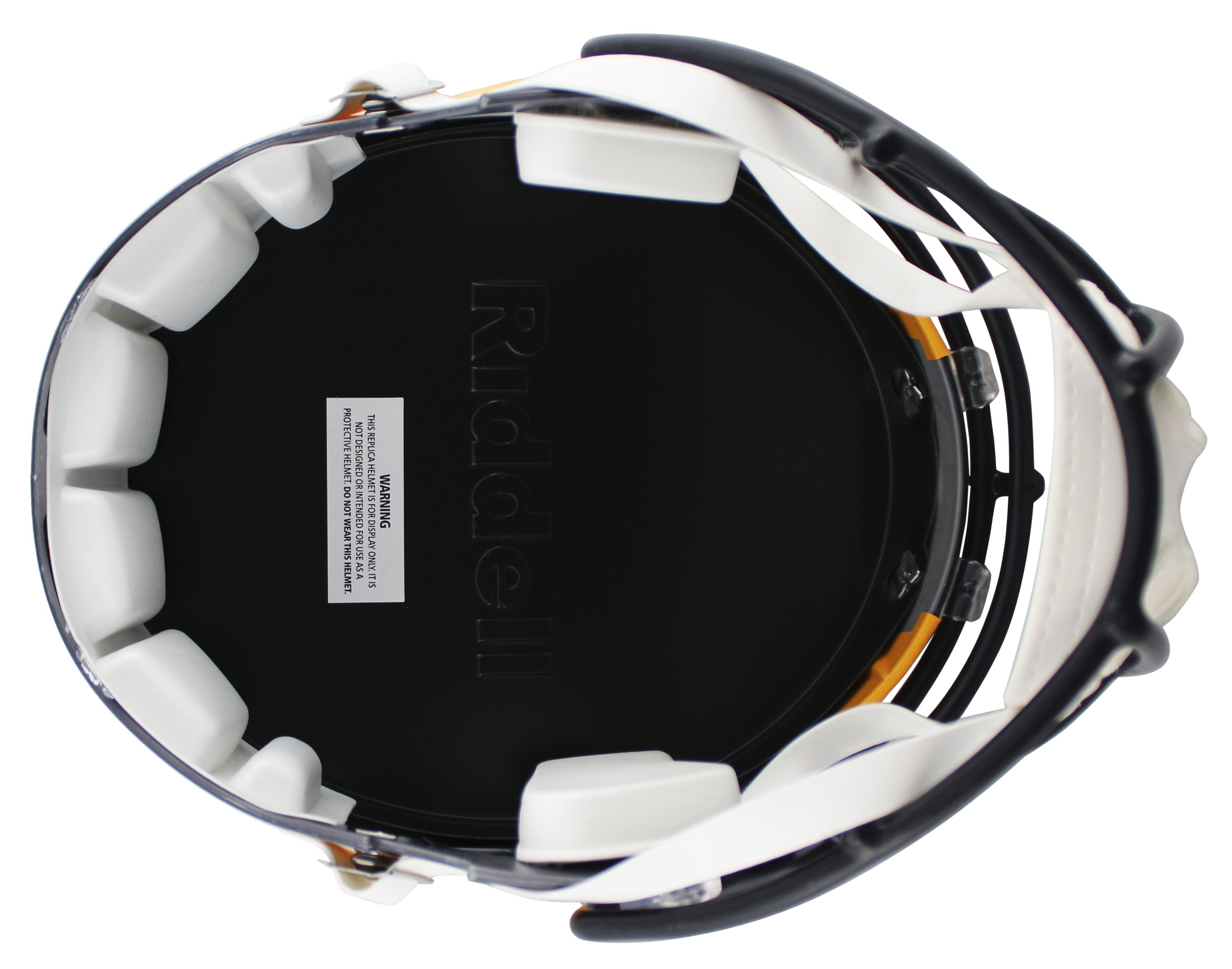 Riddell Los Angeles Rams full-size replica Speed helmet has been hand-signed by Aaron Donald.
