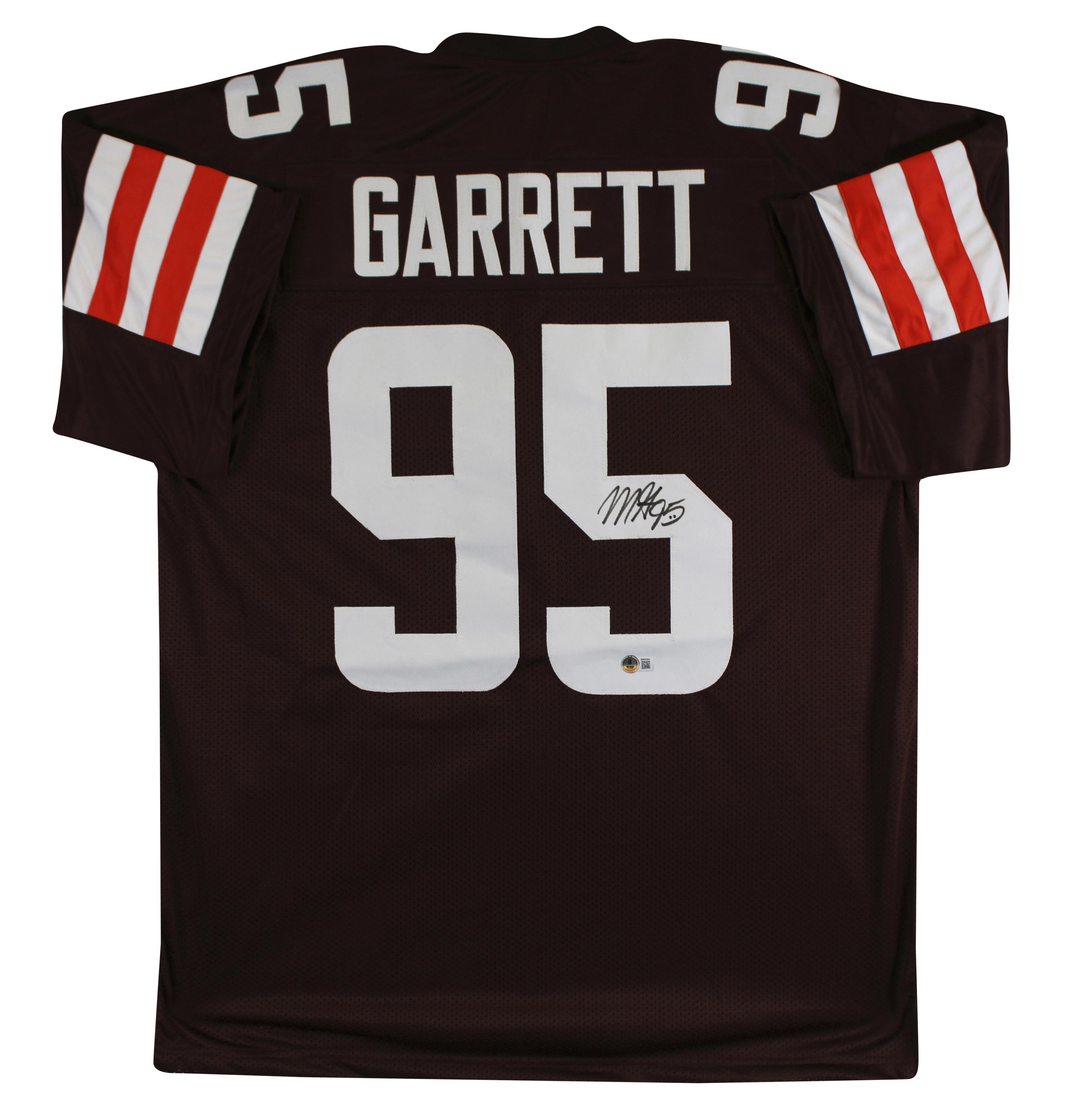 Custom jersey with everything sewn on, size XL. Hand-signed by Myles Garrett.
