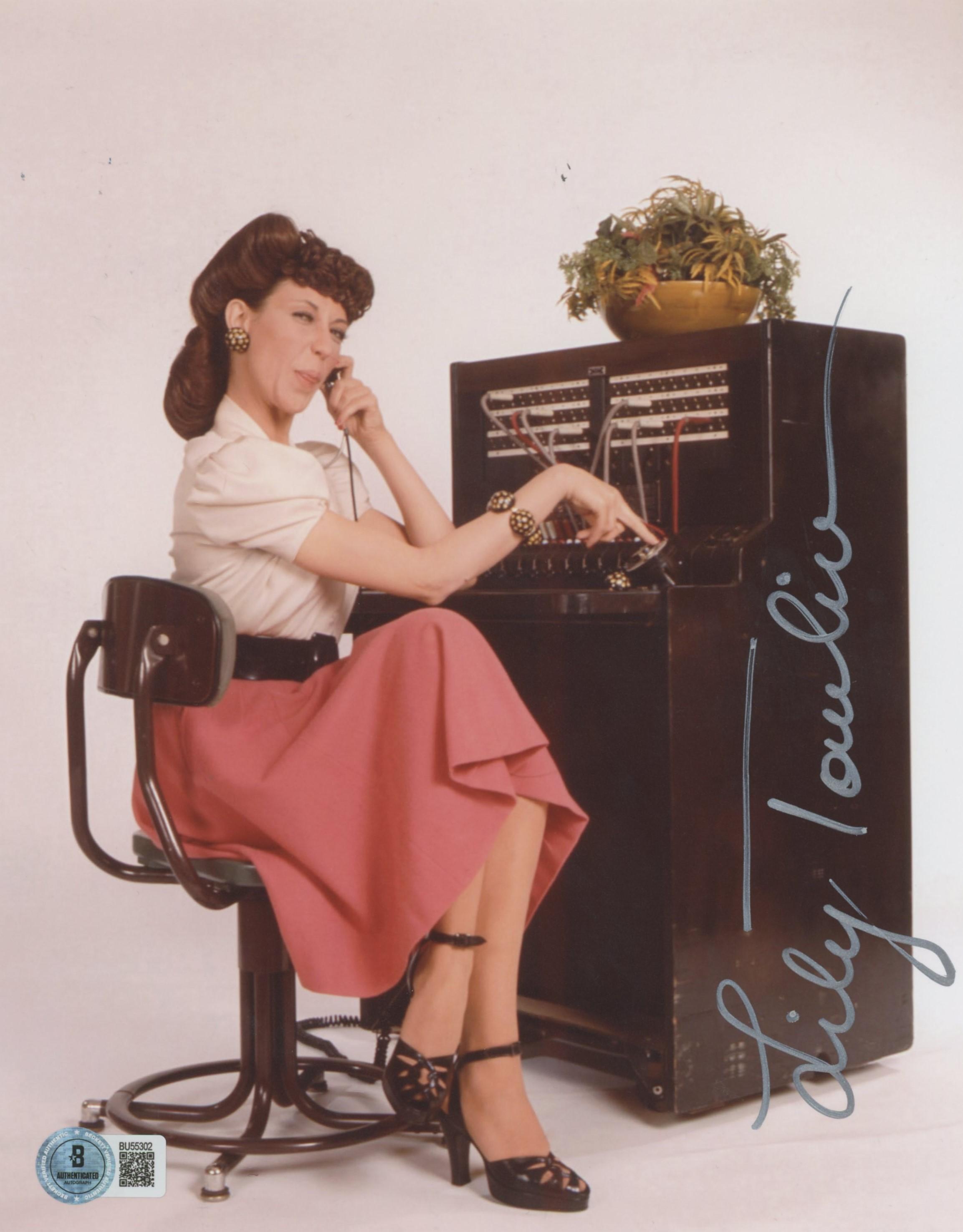 Photo measures approximately 8" x 10" in size and has been hand-signed by Lily Tomlin.
