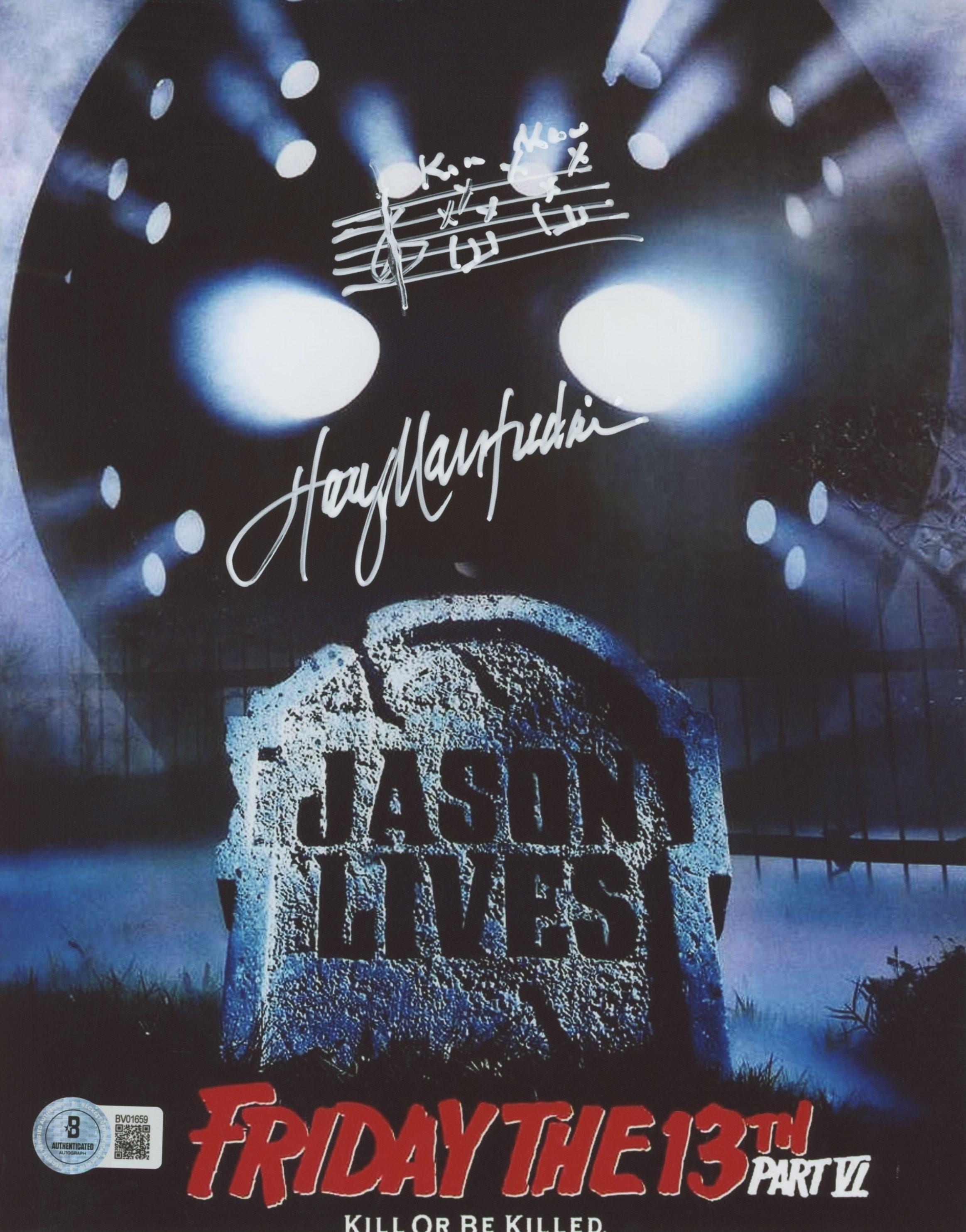 Photo measures approximately 8" x 10" in size and has been hand-signed and illustrated by Harry Manfredini.