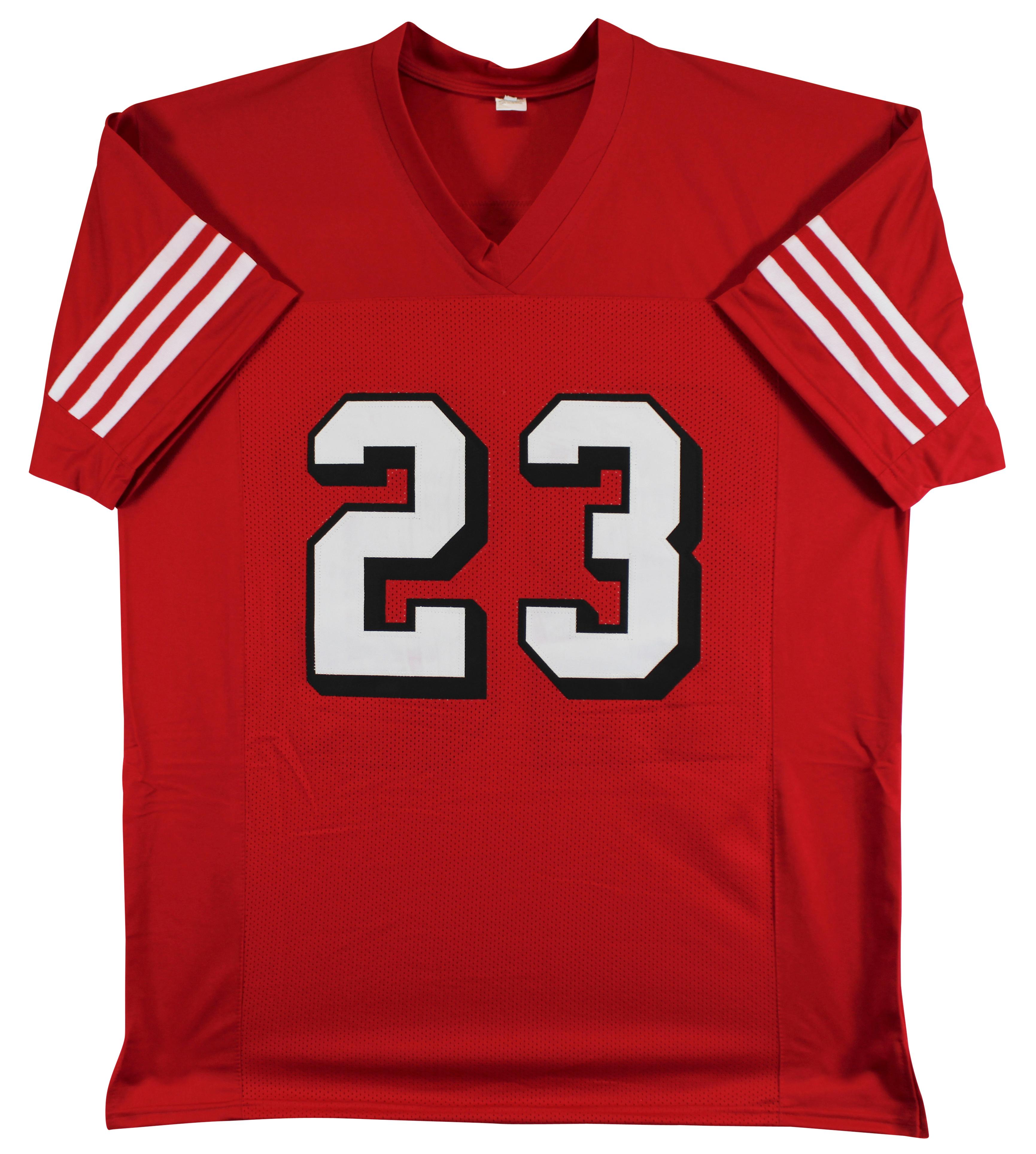 Custom jersey with everything sewn on, size XL. Hand-signed by Christian McCaffrey (San Fransisco 49ers).