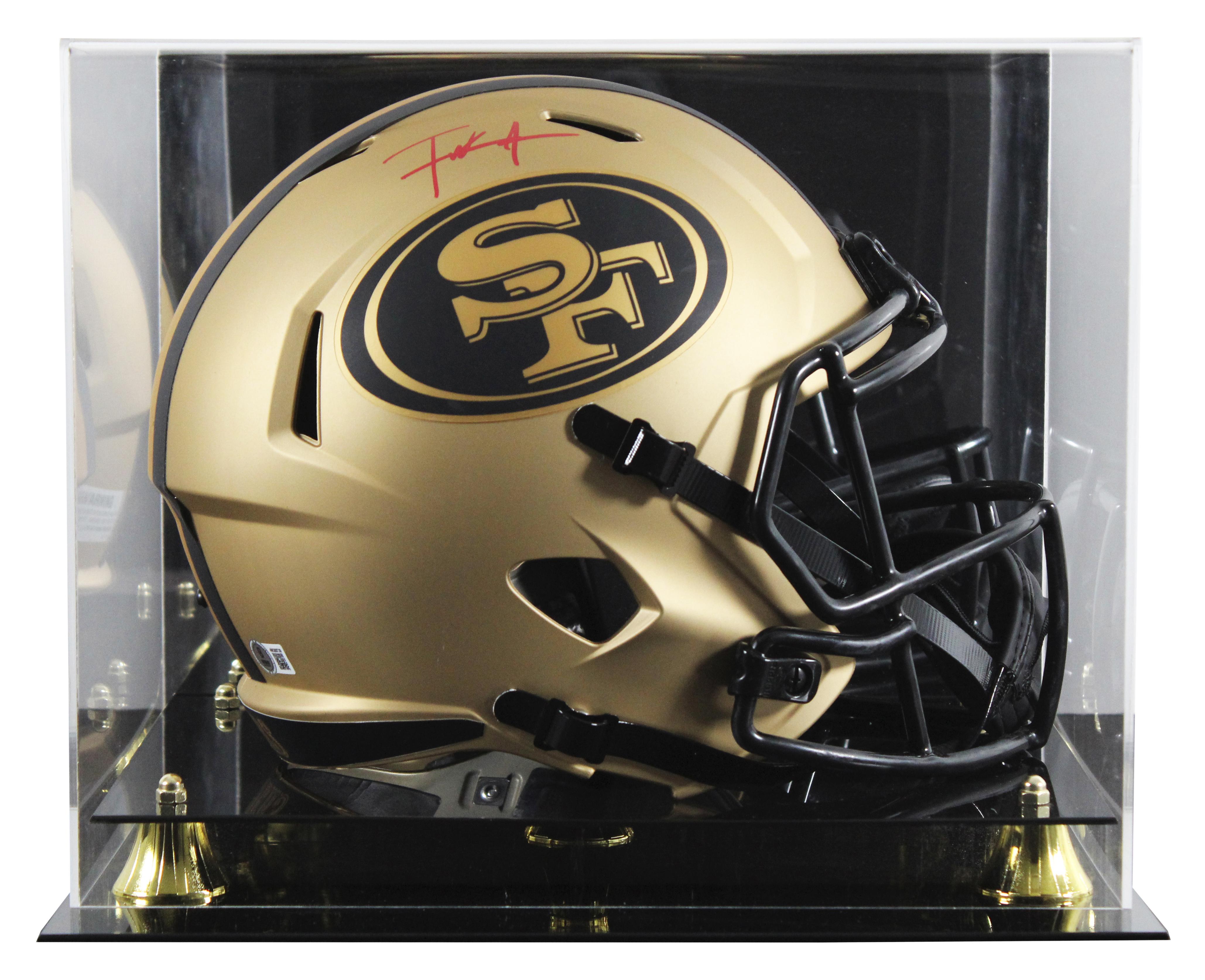 Riddell San Fransisco 49ers full-size replica Rave Alternate Speed helmet has been hand-signed by Frank Gore. The display case is included as shown.