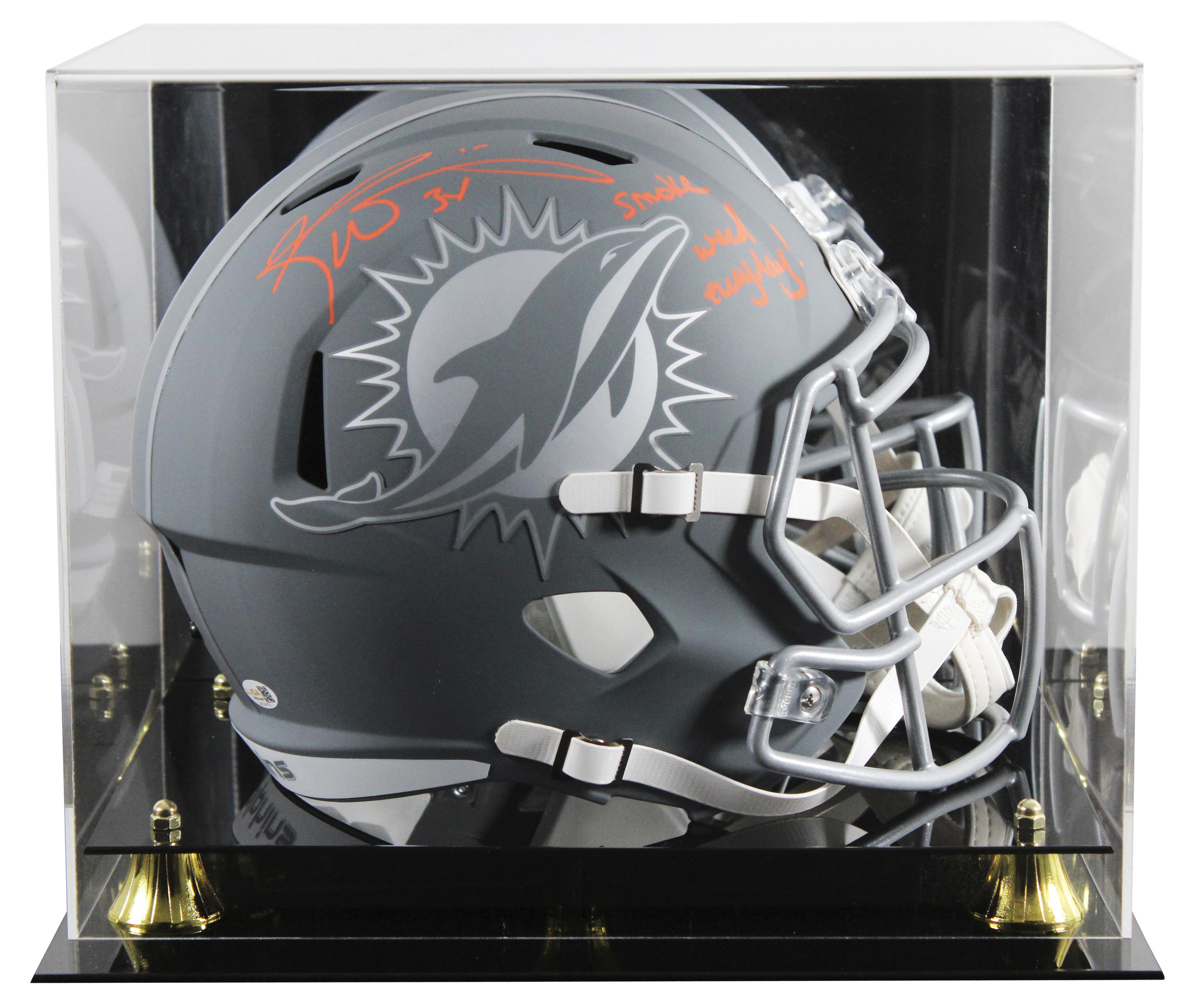 Riddell Miami Dolphins full-size replica Slate Alternate Speed helmet has been hand-signed and inscribed by Ricky Williams. The display case is included as shown.