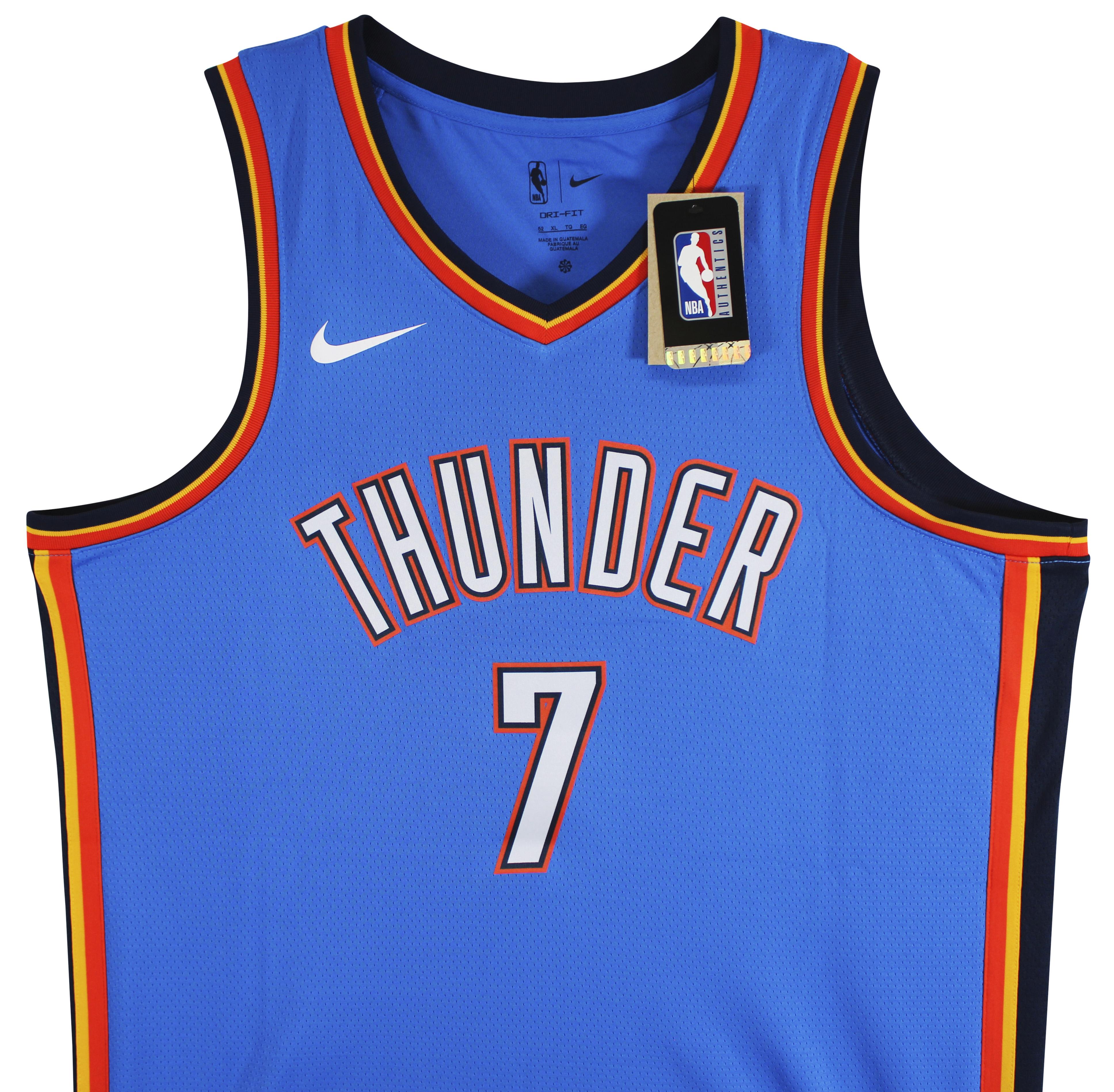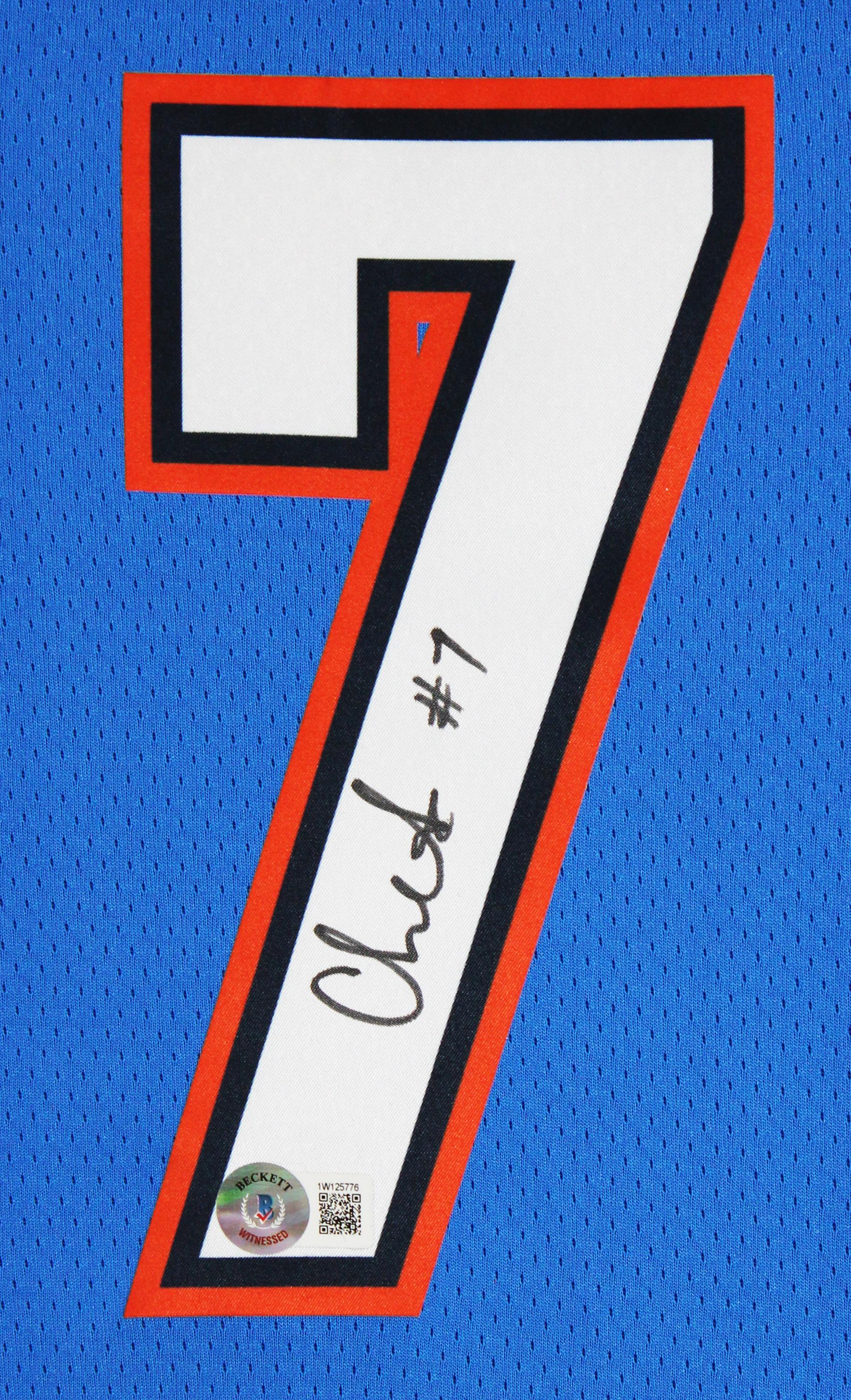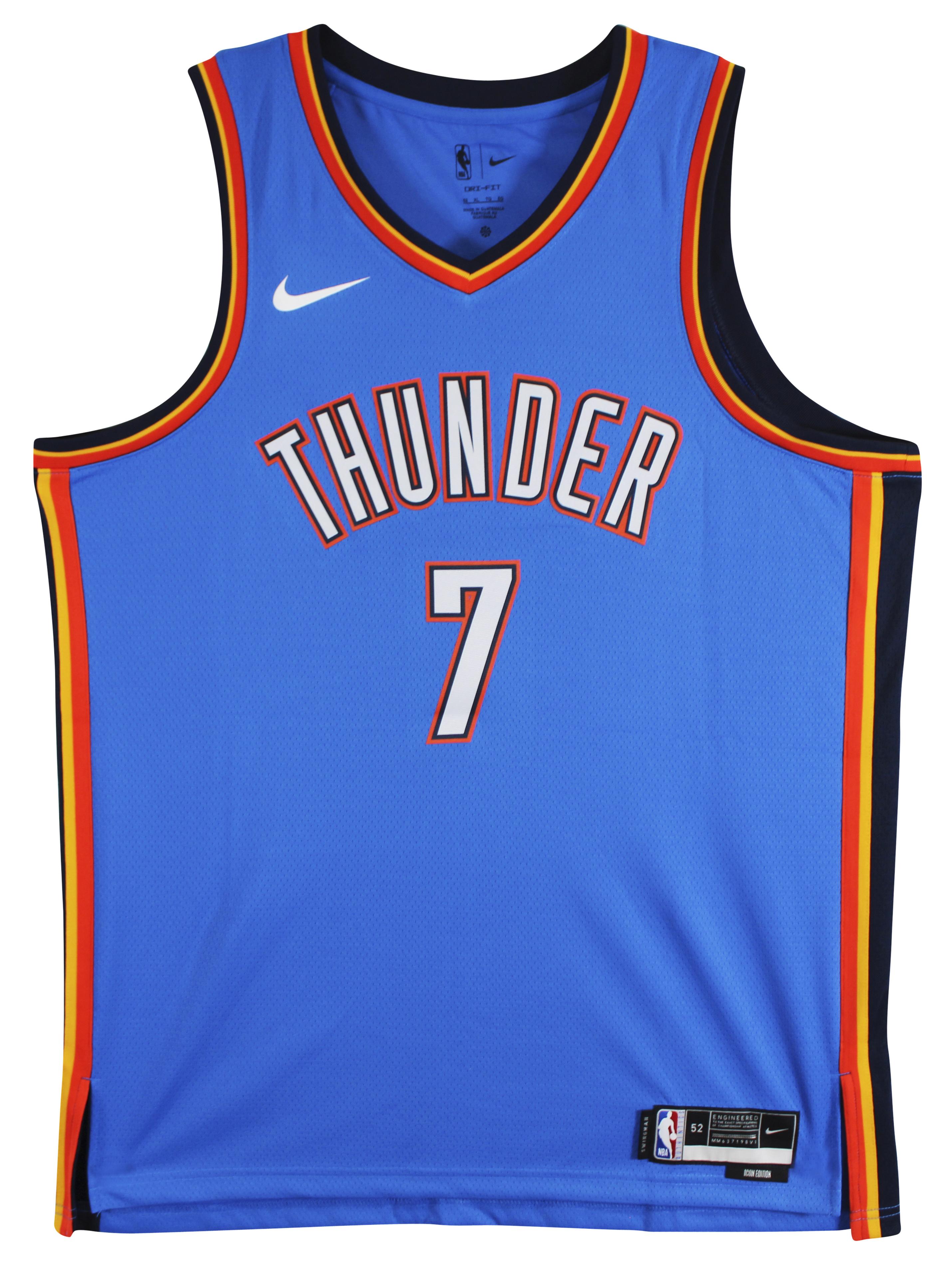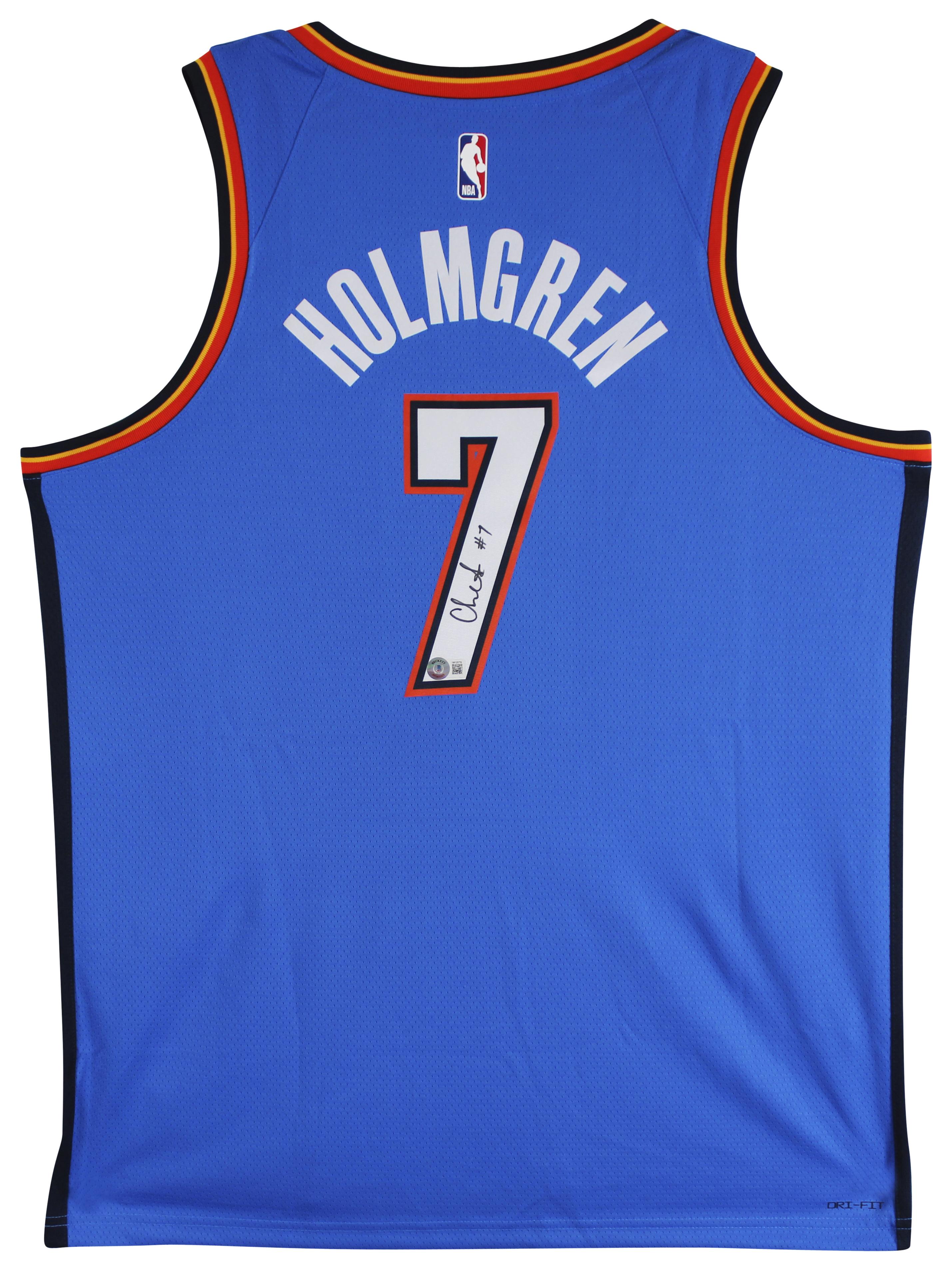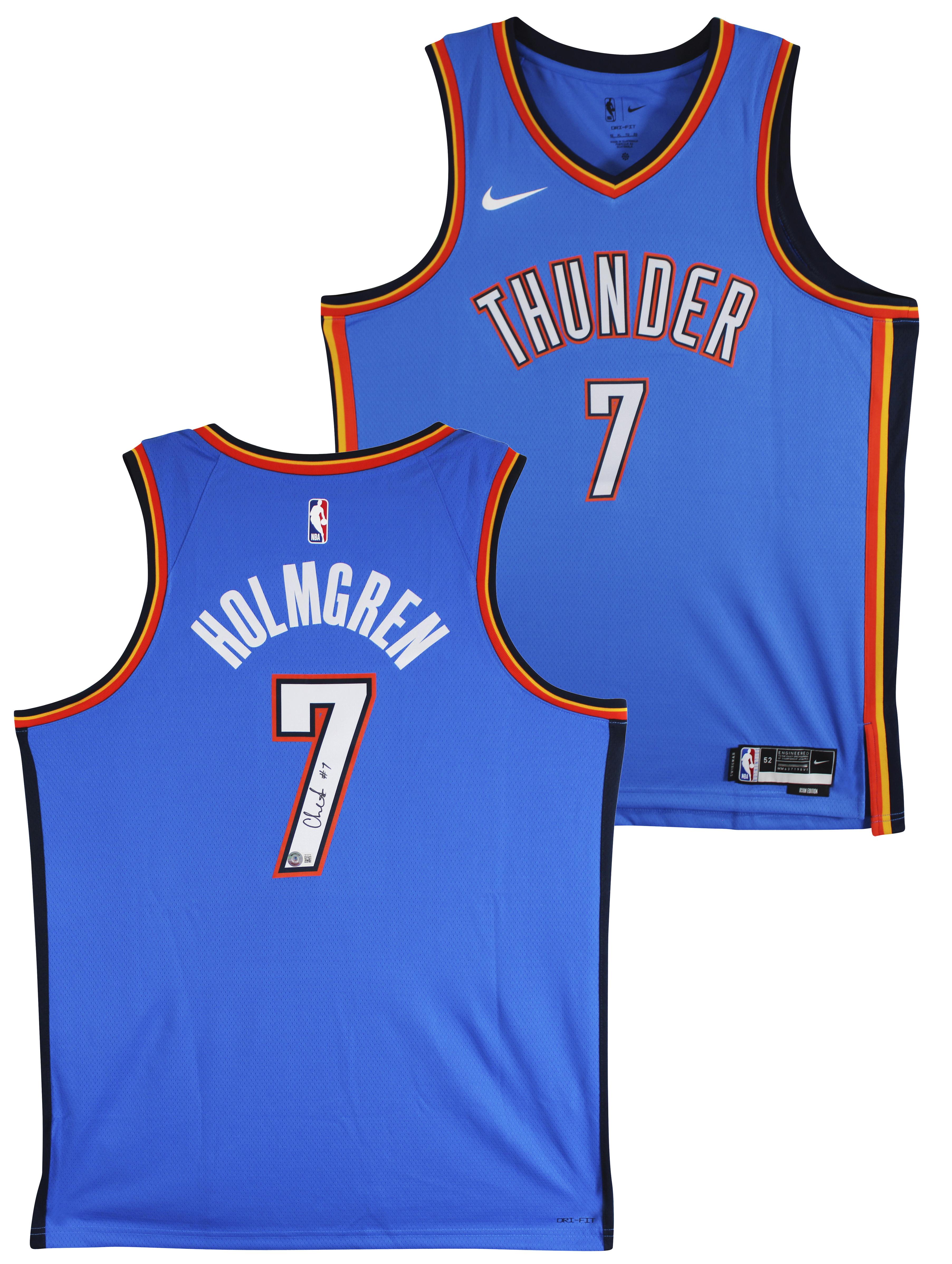 Nike authentic jersey with everything pressed on, size 52. Hand-signed by Chet Holmgren (Oklahoma City Thunder).