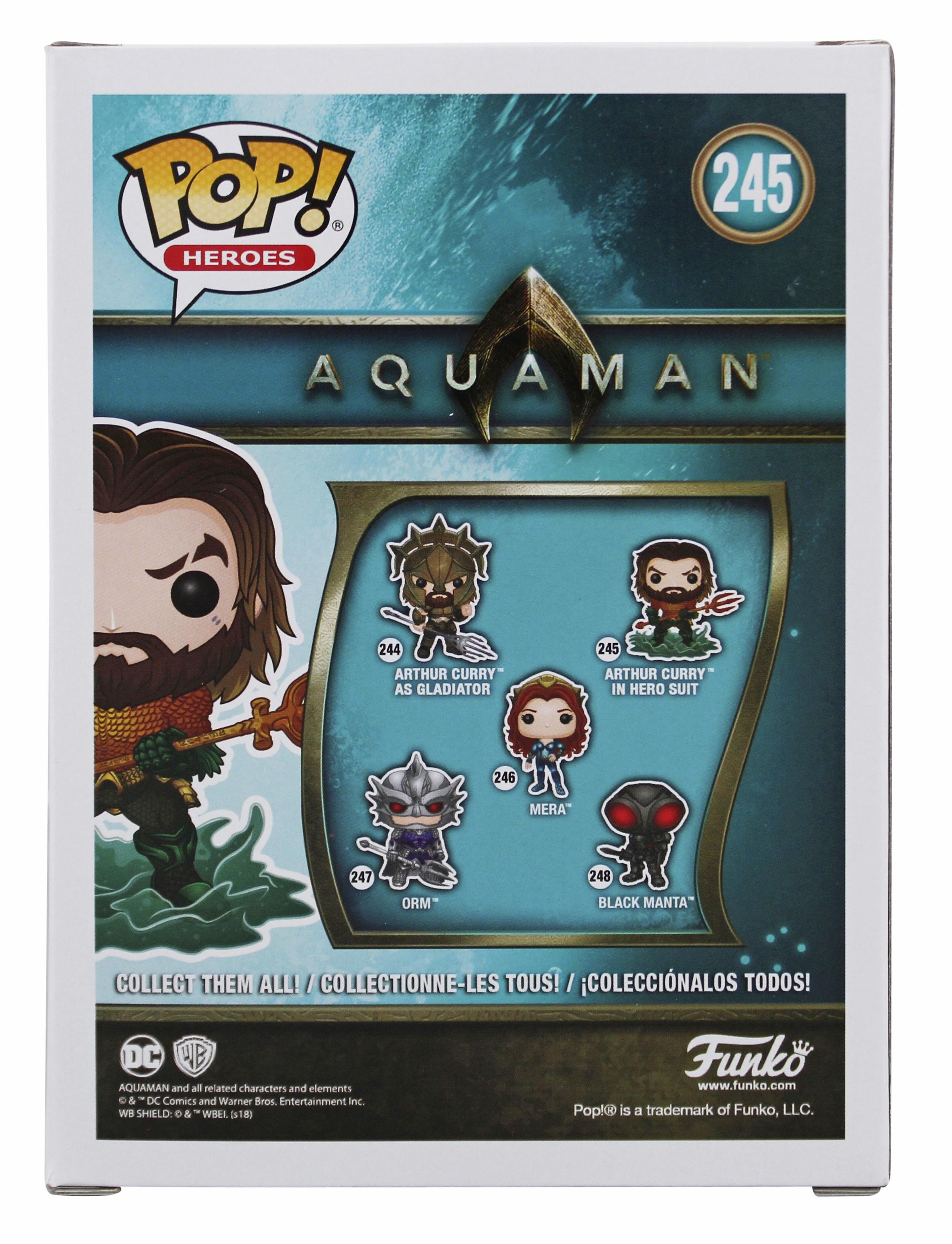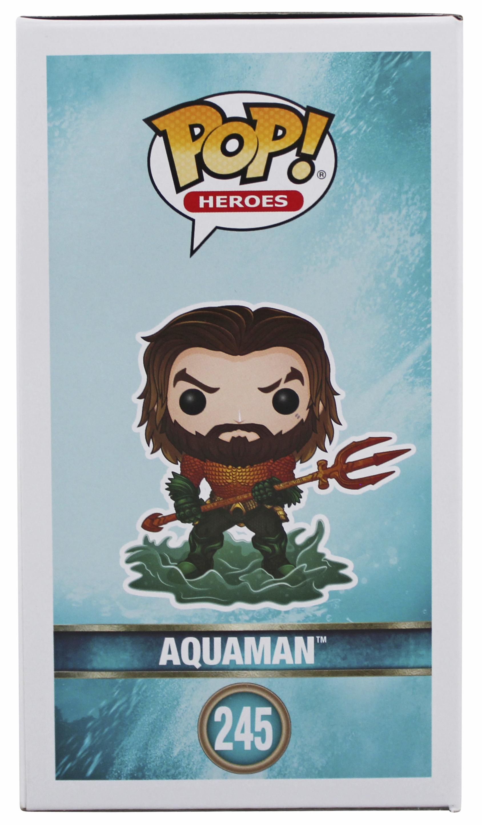 Funko Pop! vinyl figure measures approximately 4" in height and has been hand-signed on the packaging by Jason Momoa.