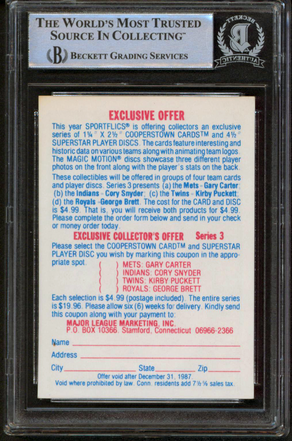 George Brett Signed 1987 Sportsflics Exclusive Collector's Offers #nn (BGS)