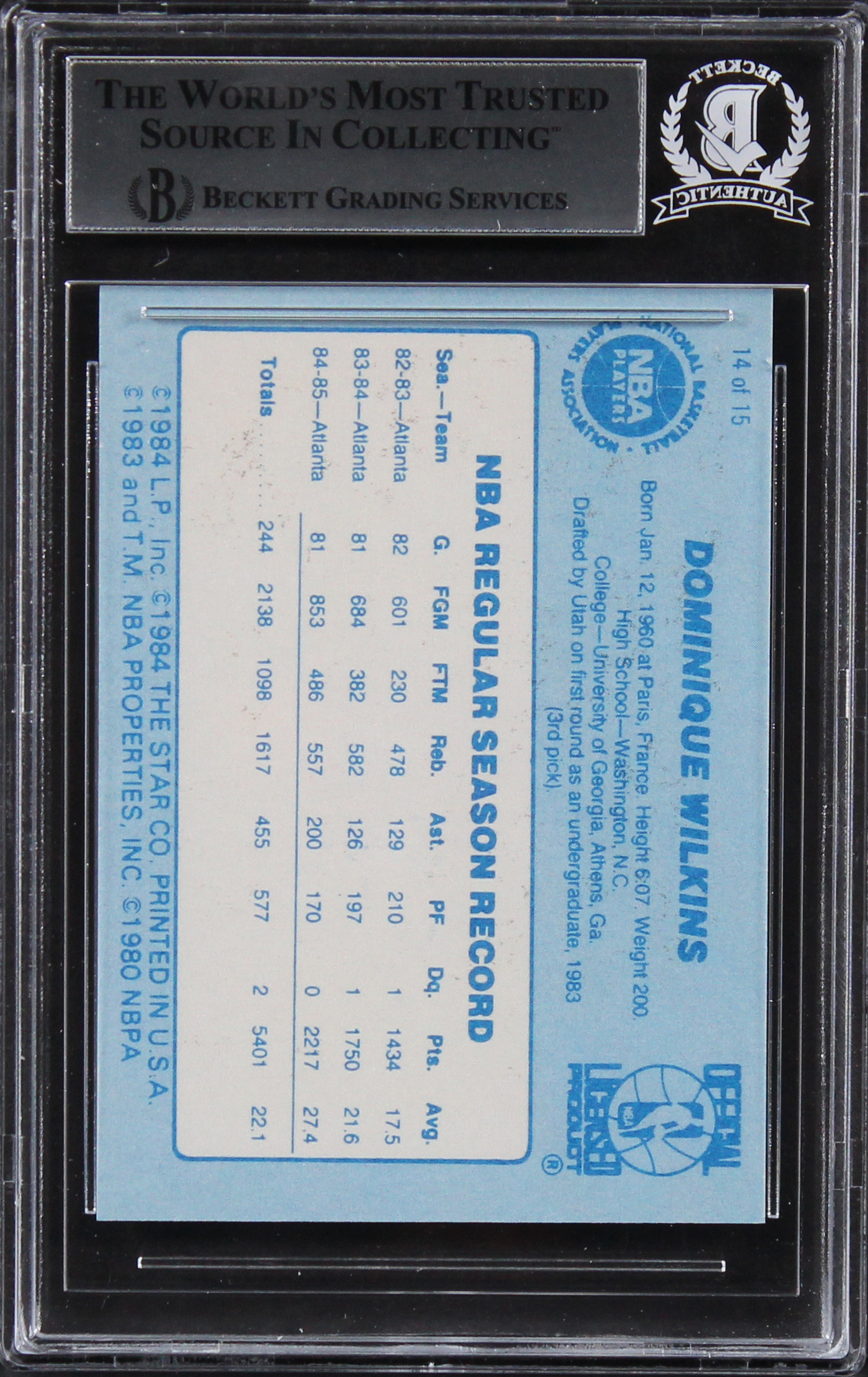 Dominique Wilkins Signed 1986 Star Best of the Best #14 Inscribed "HOF 06" (BGS)
