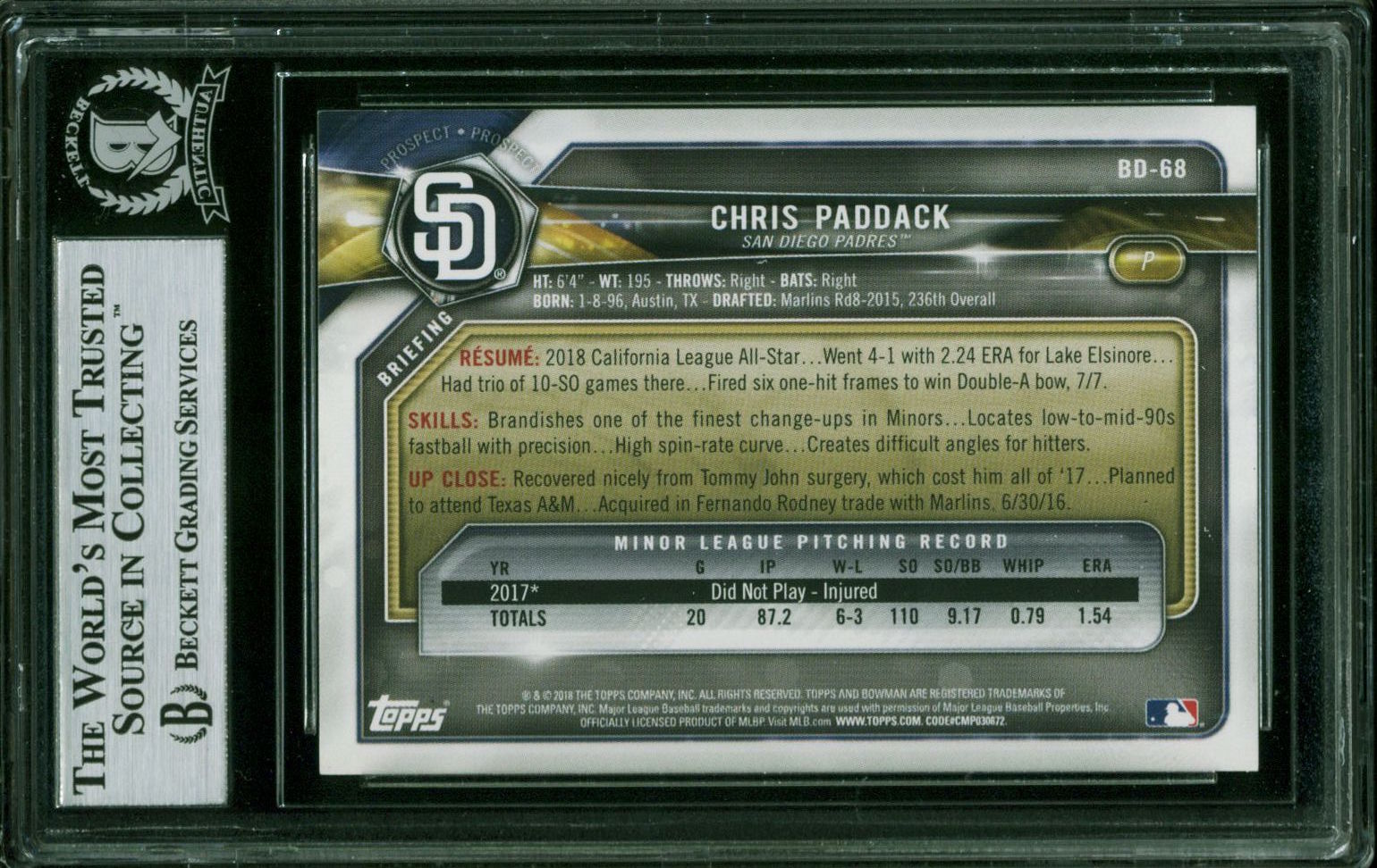 Chris Paddack Signed 2018 Bowman Draft #BD68 (BGS)