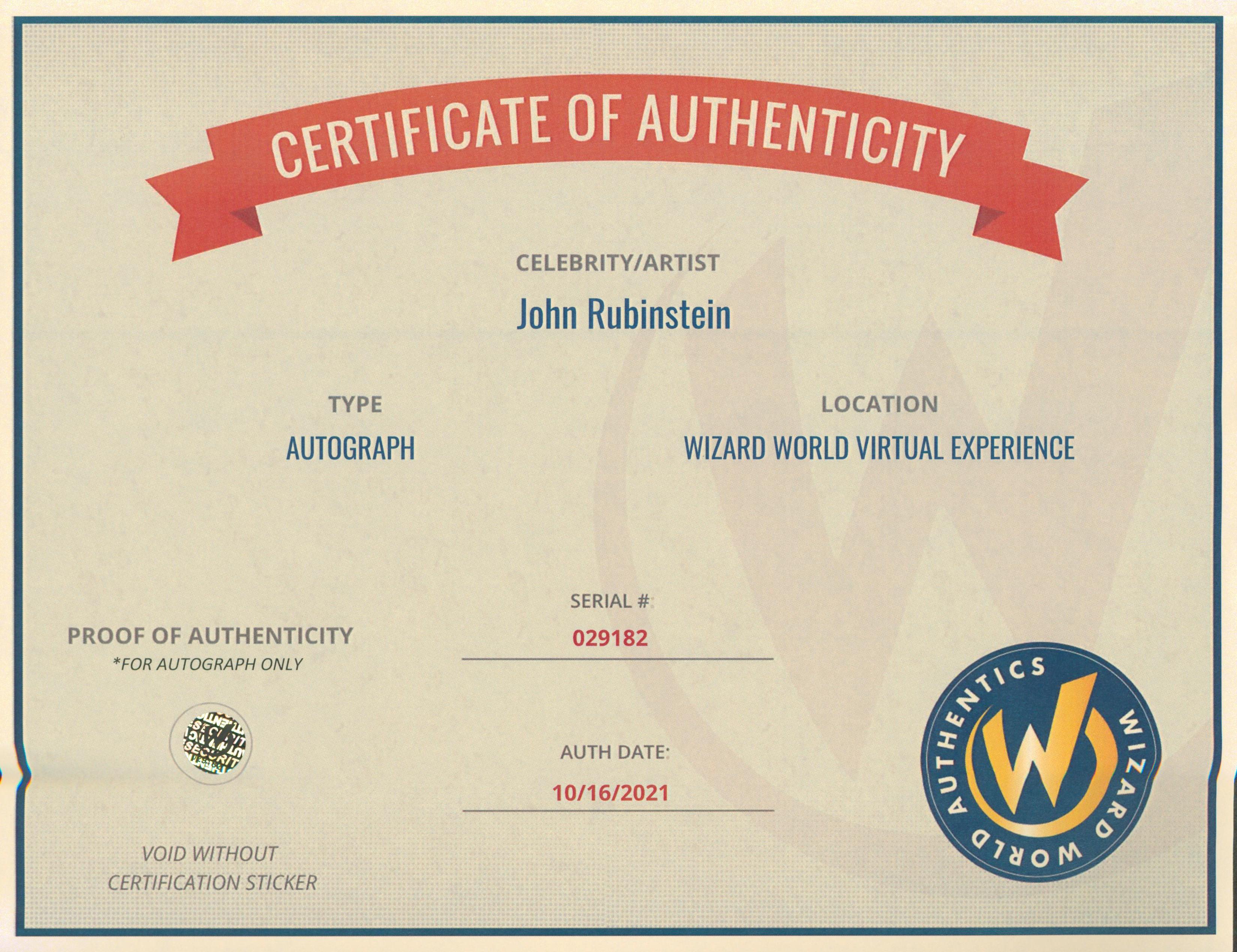 Photo measures approximately 8" x 10" in size and has been hand-signed by John Rubinstein.