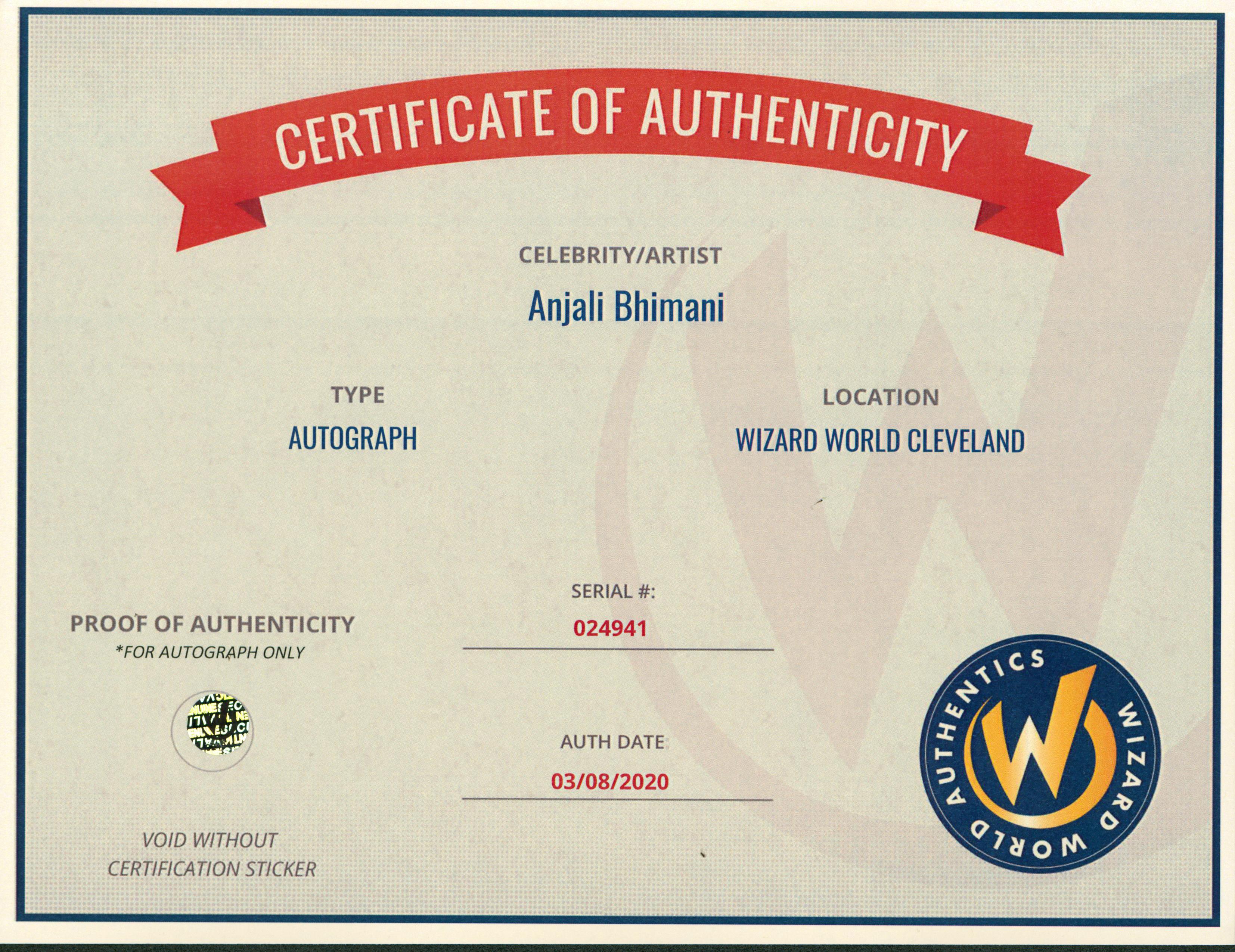Photo measures approximately 8" x 10" in size and has been hand-signed by Anjali Bhimani.
